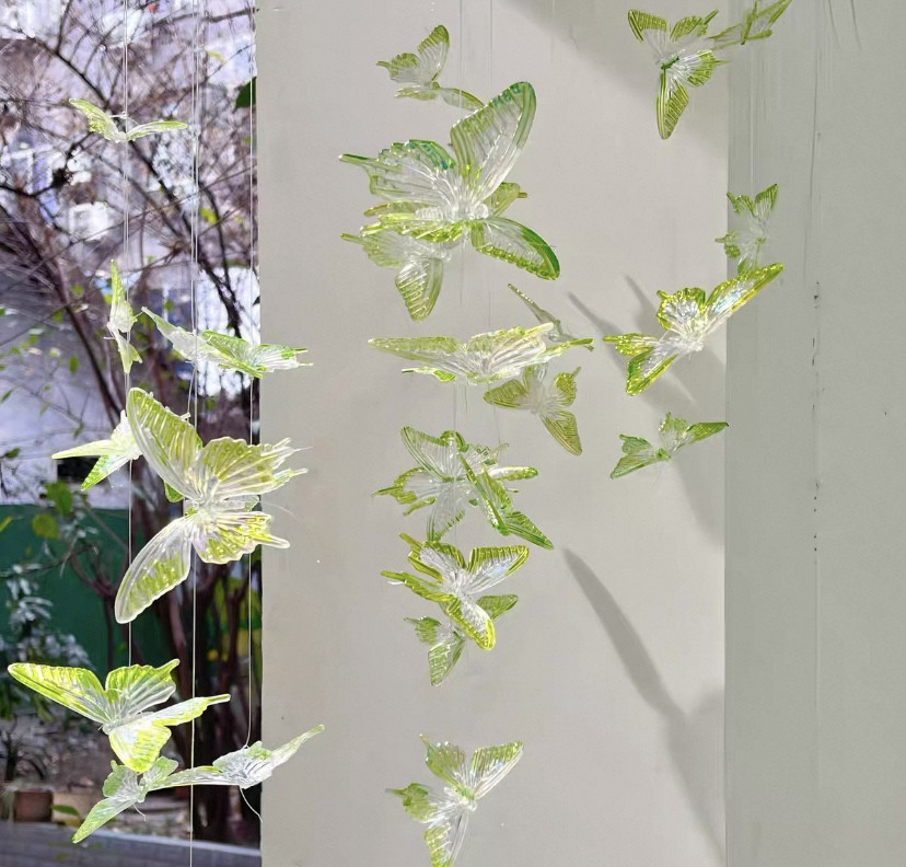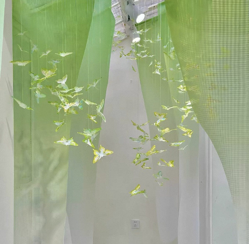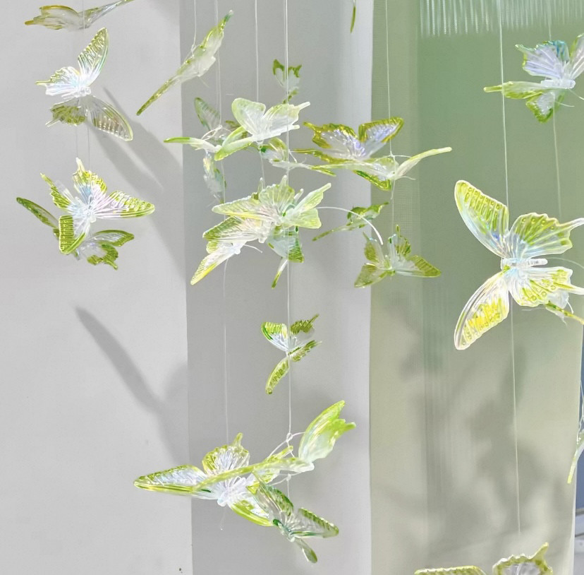 扮纱幔 幼儿园春夏主题环创diy幻彩蝴蝶挂饰商场店铺绿色系背景装由