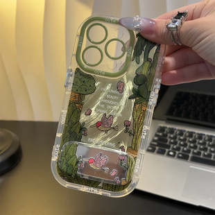 森系蝴蝶小鸟镜子支架适用苹果16Promax手机壳iPhone17Pro小米15华为mate70pura80荣耀200K60Reno13nova14S30