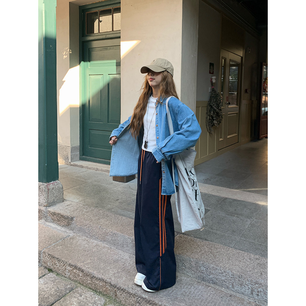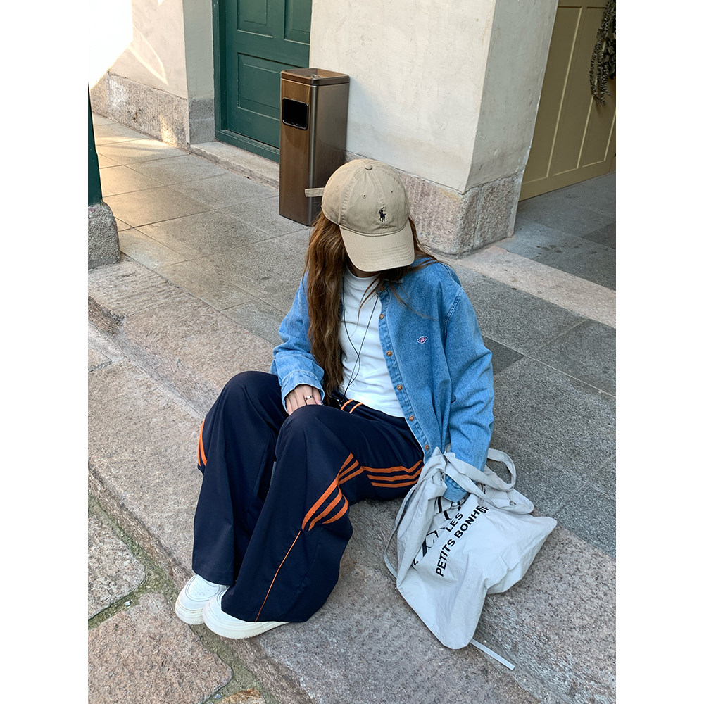 荒荒家 2026春秋新款 学院港风减龄运动阔腿裤 女 三条杠撞色休闲裤