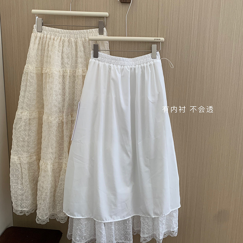 2025叠穿裙屁帘下摆卫衣蕾丝打底神器叠穿打底裙小白裙遮胯半身裙