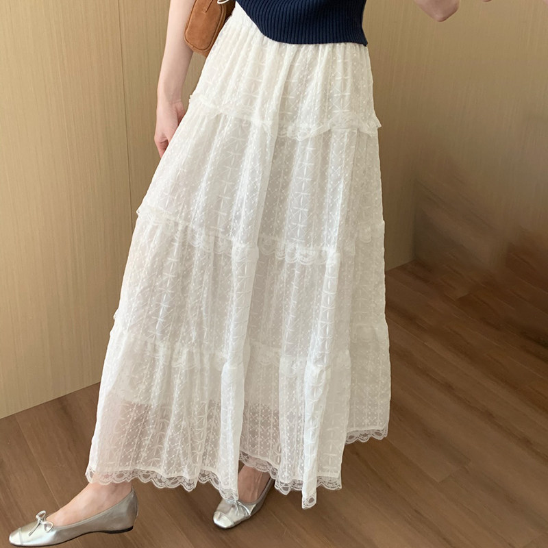 话里钩花层层蛋糕半裙2026夏季 百搭高腰显瘦掐腰半身裙伞裙女 新款