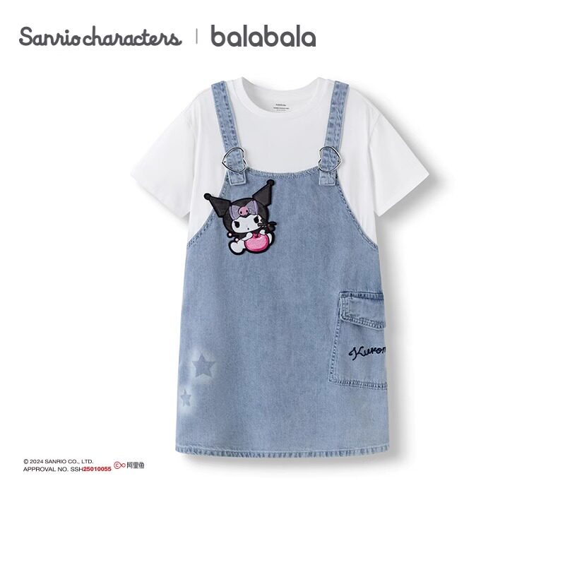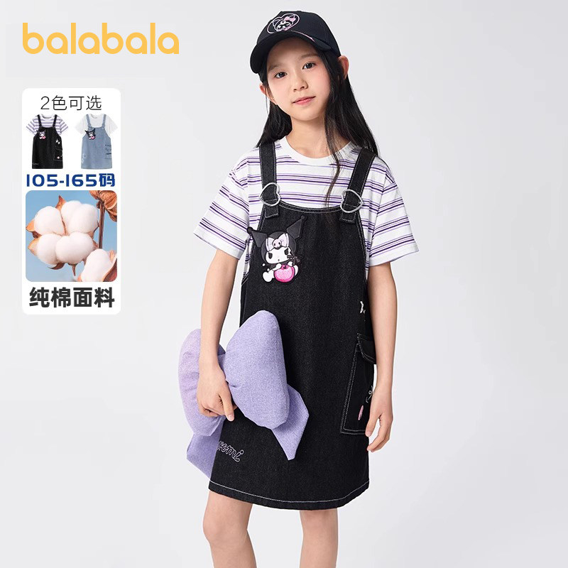 库洛米巴拉巴拉童装 儿童大童牛仔背带裙假两件纯棉 女童连衣裙夏装