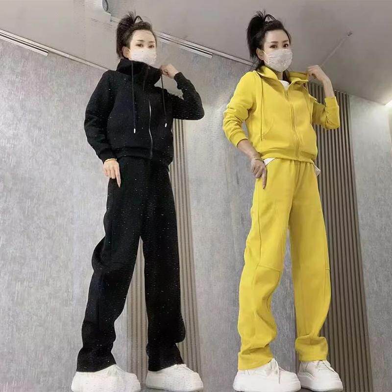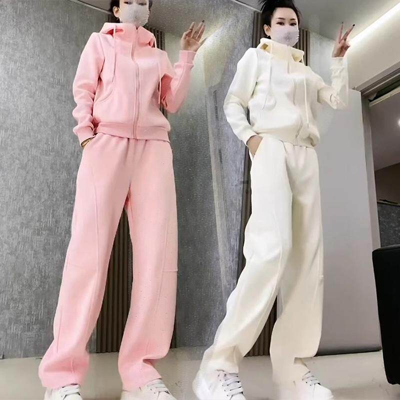 时尚 春秋季 休闲运动套装 女2025新款 两件套 百搭连帽拉链外套束脚裤