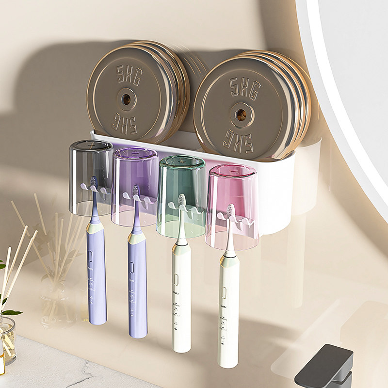 免打孔卫生间家庭漱口牙杯挂架收纳 电动牙刷牙膏架子置物架壁挂式由