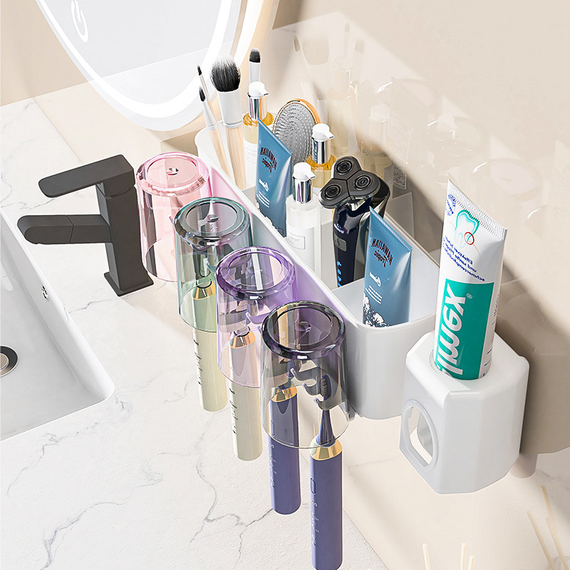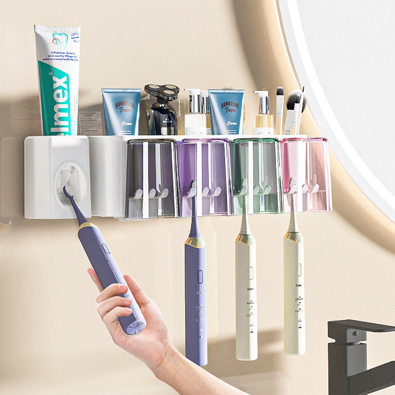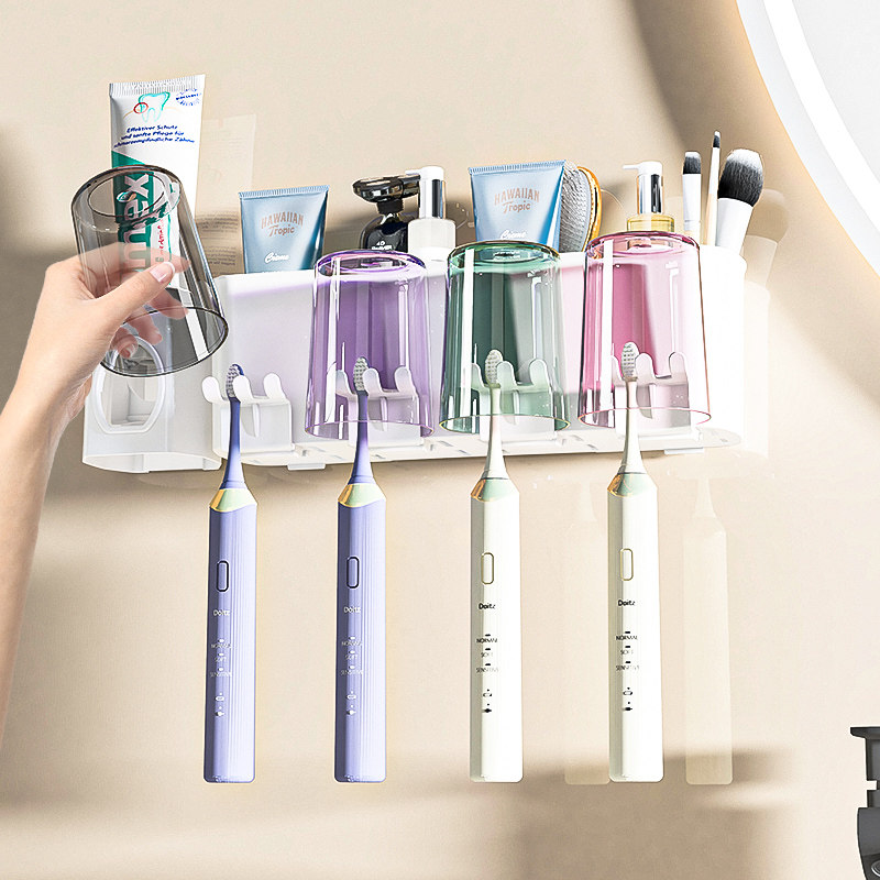 免打孔卫生间家庭漱口牙杯挂架收纳 电动牙刷牙膏架子置物架壁挂式