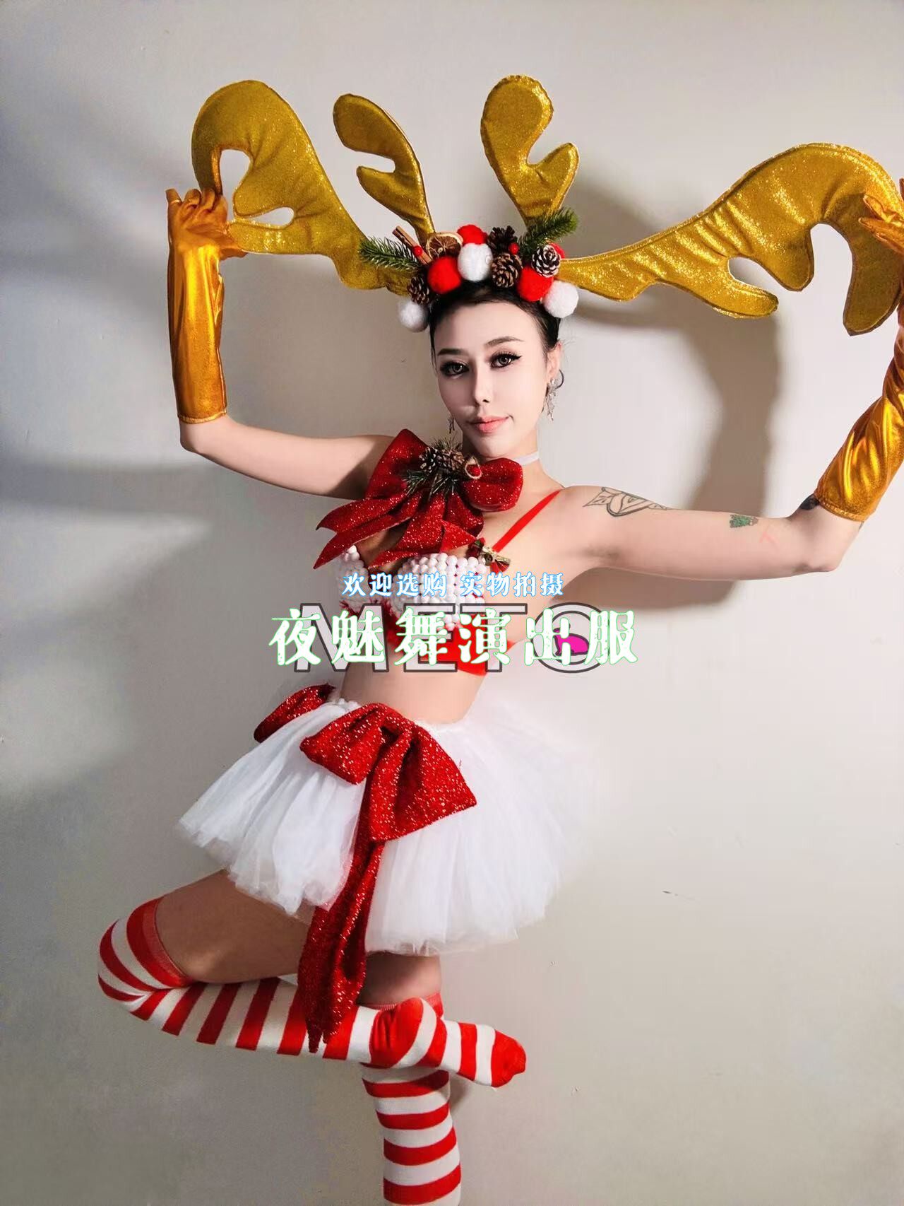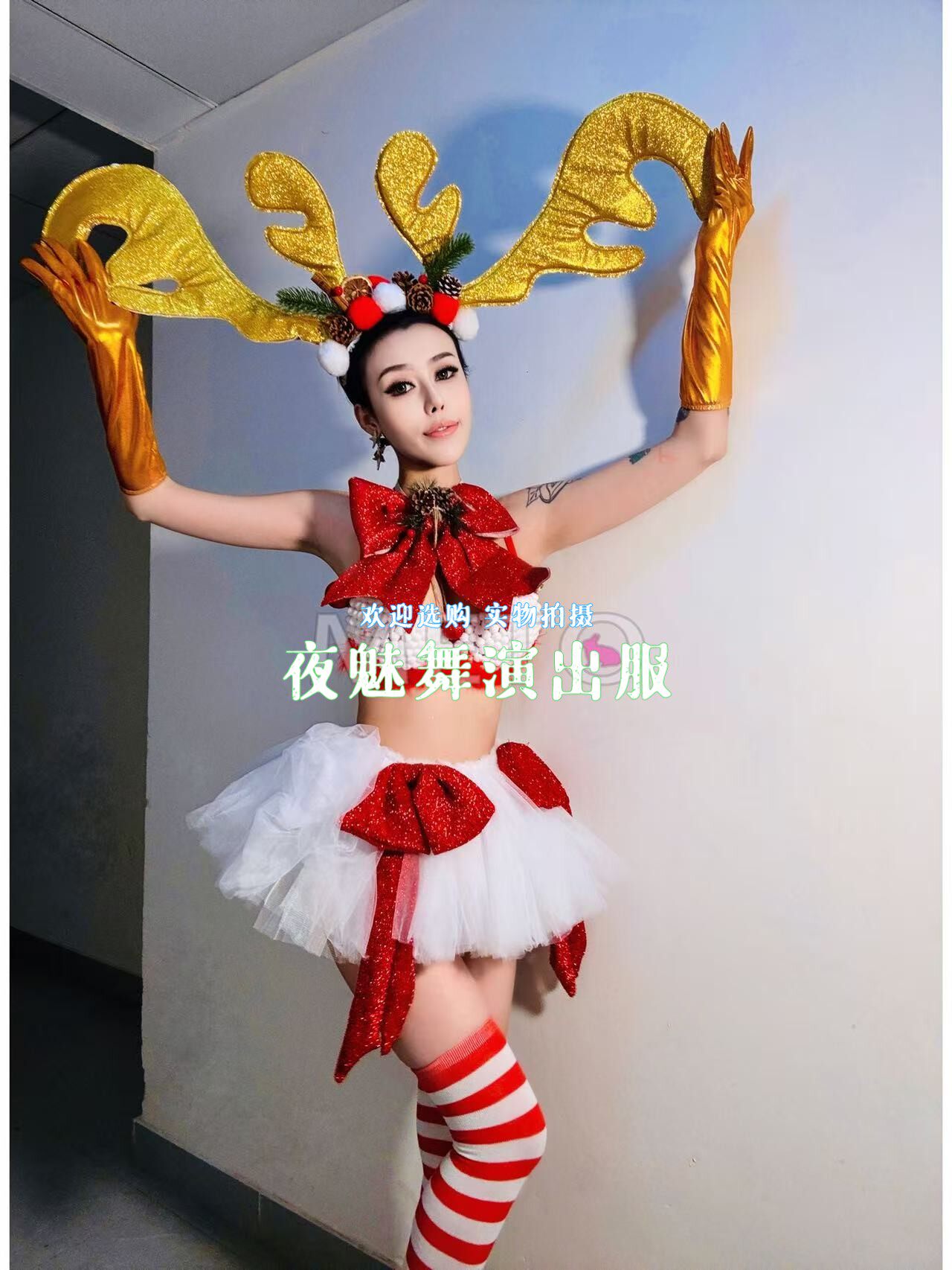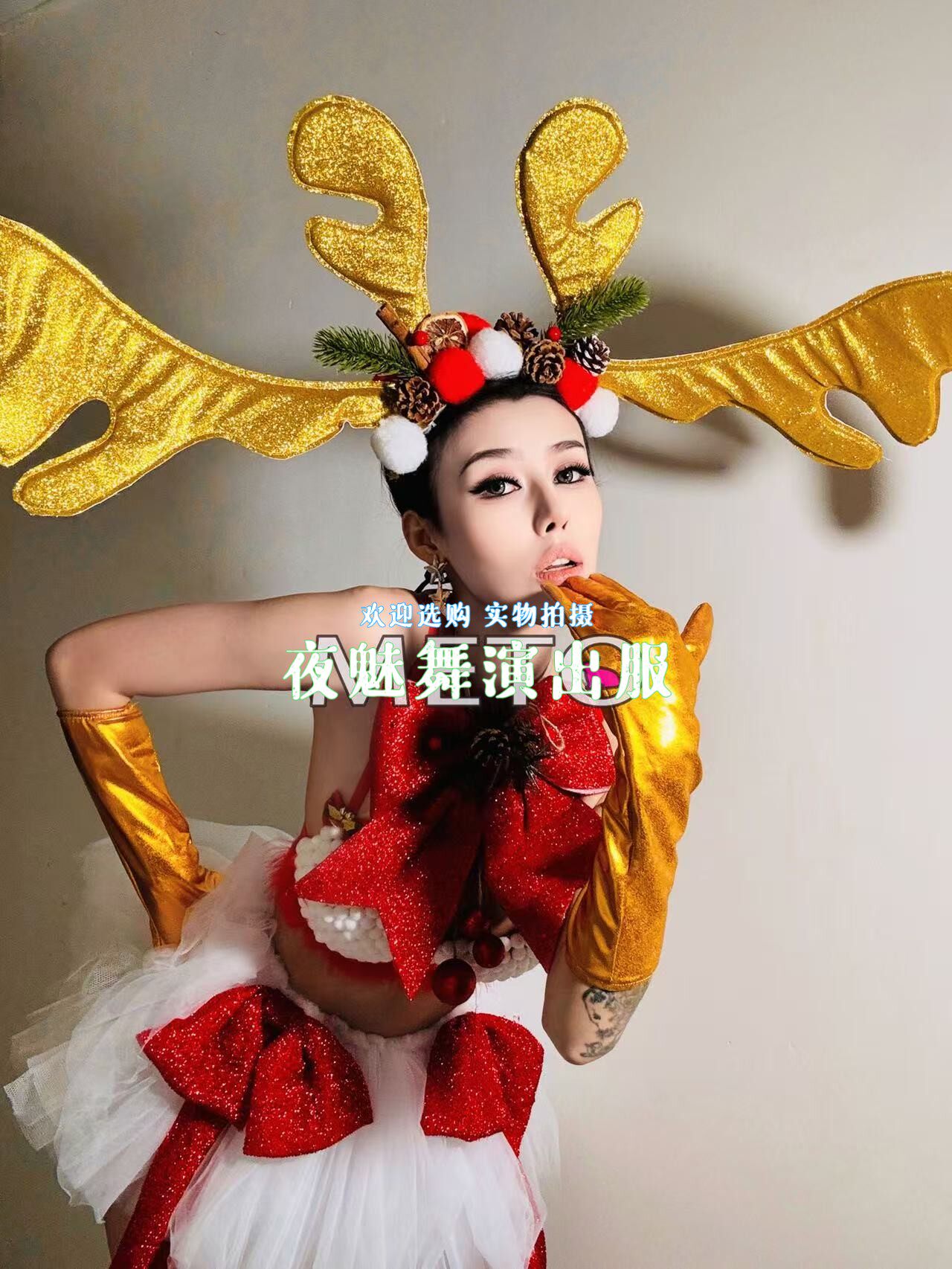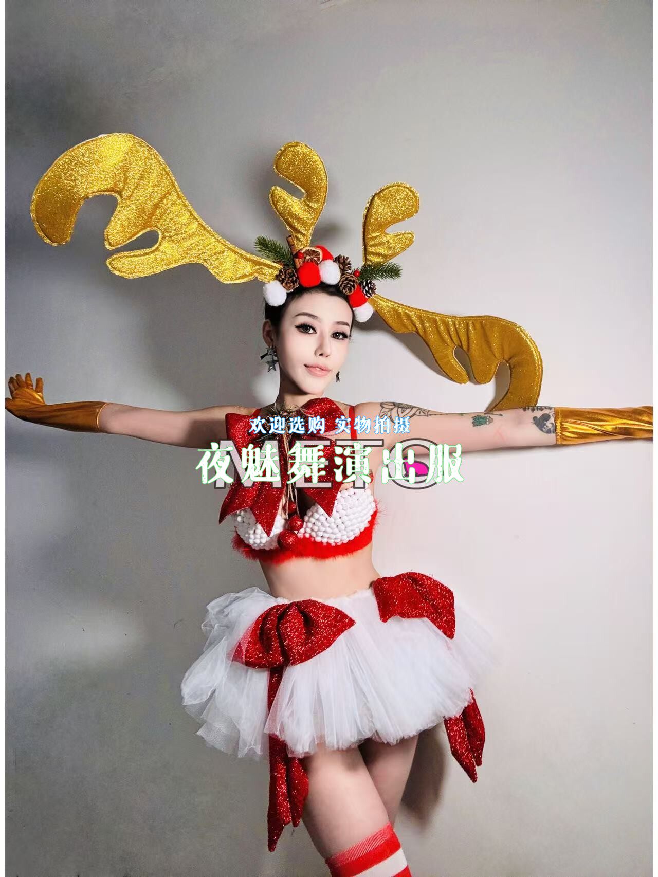 酒吧夜店圣诞节gogo演出服女dj麋鹿性感金色鹿角套装 ds舞台装由