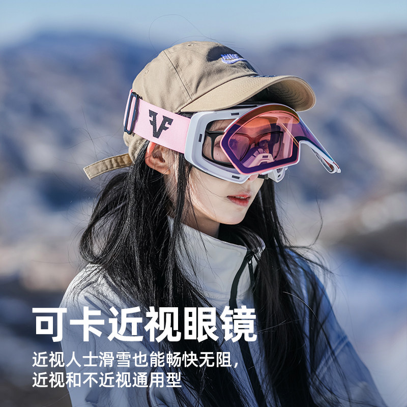 滑雪眼镜女滑雪镜磁吸护目镜男雪地柱面双层防雾可戴近视登山雪镜