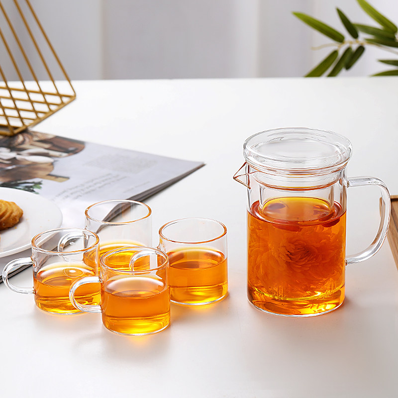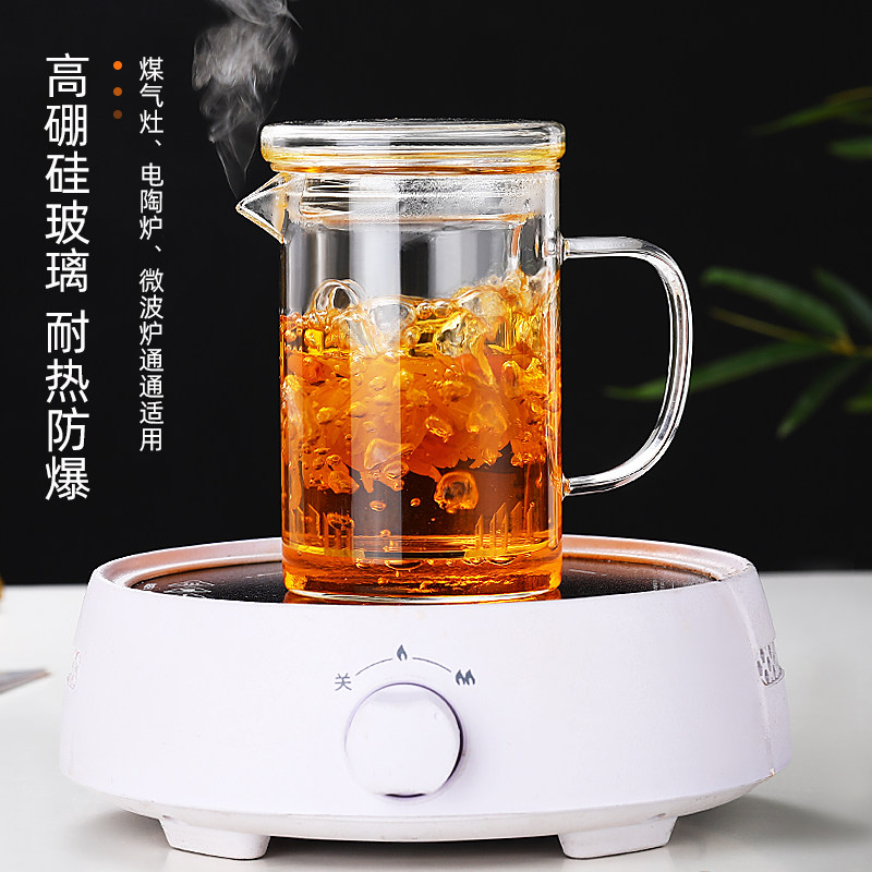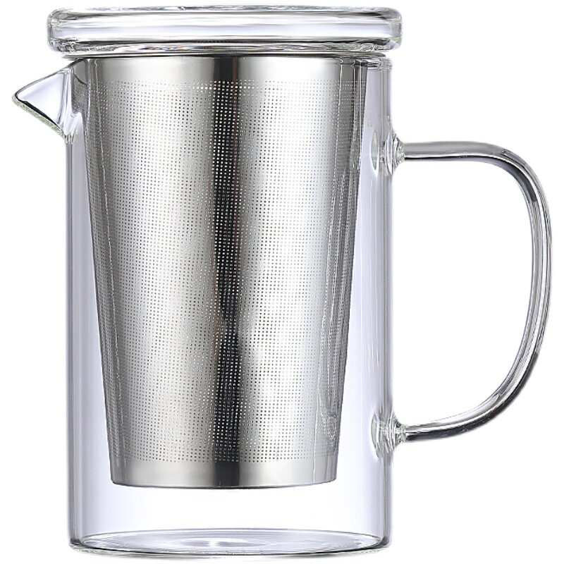 家用加厚耐热玻璃杯水杯带嘴玻璃茶壶不锈钢内胆过滤泡茶杯办公由
