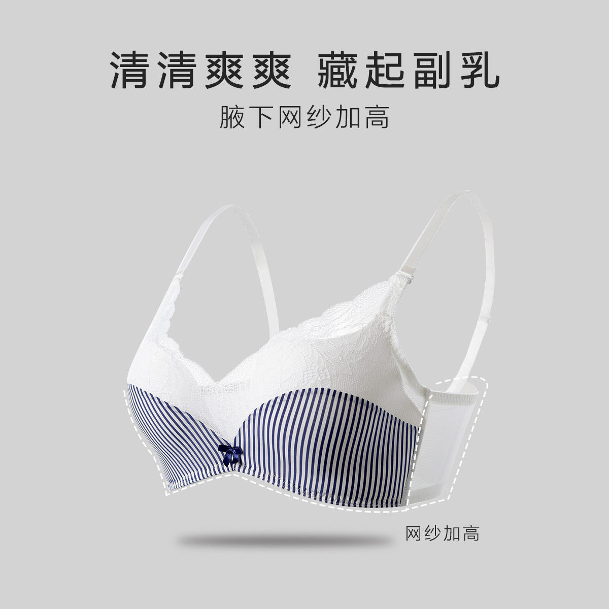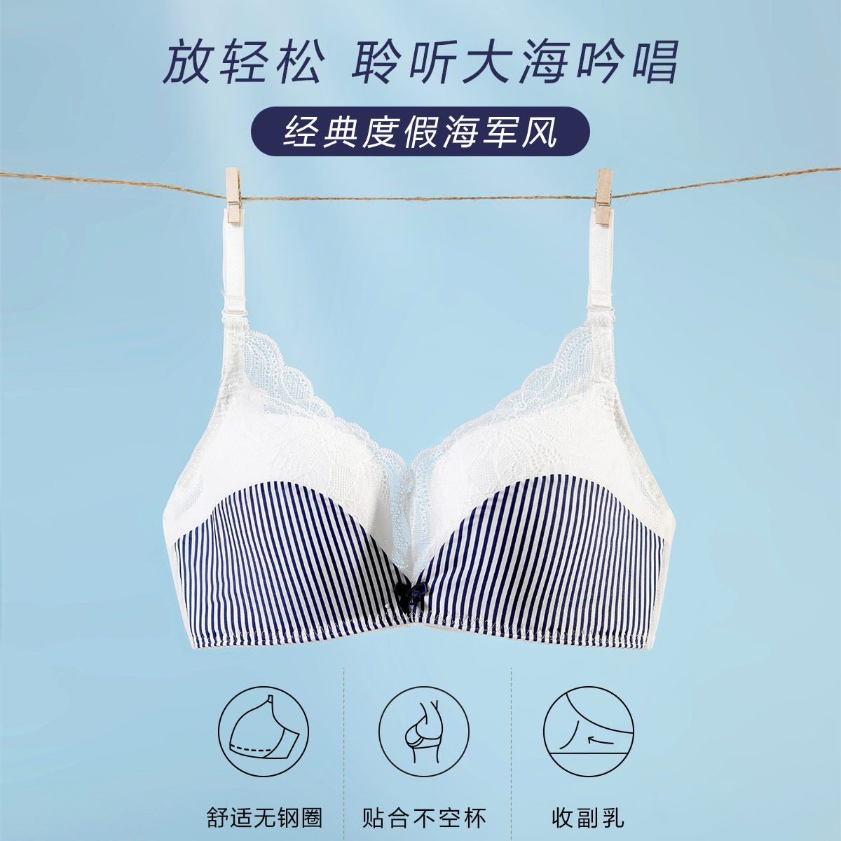 时尚 少女海军风内衣蕾丝文胸上薄下厚内衣 舒适无钢圈 安莉芳