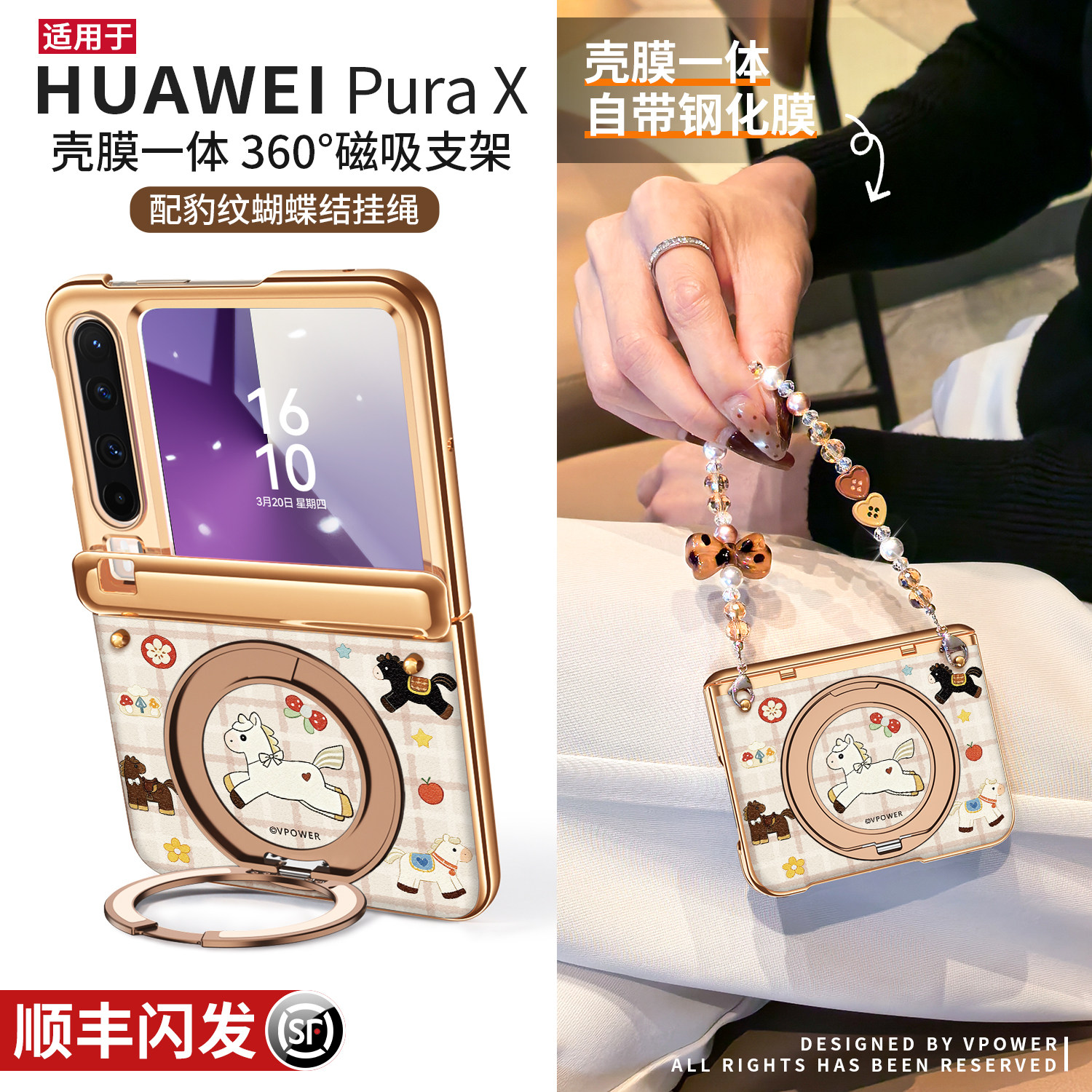 x保护套pure外壳带挂绳斜挎阔折叠磁吸支架卡通 童趣小马维泡适用华为purax手机壳中轴全包壳膜一体pura典藏版