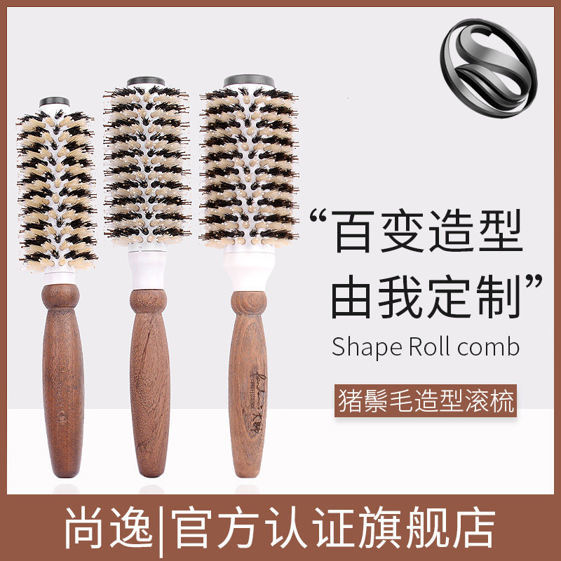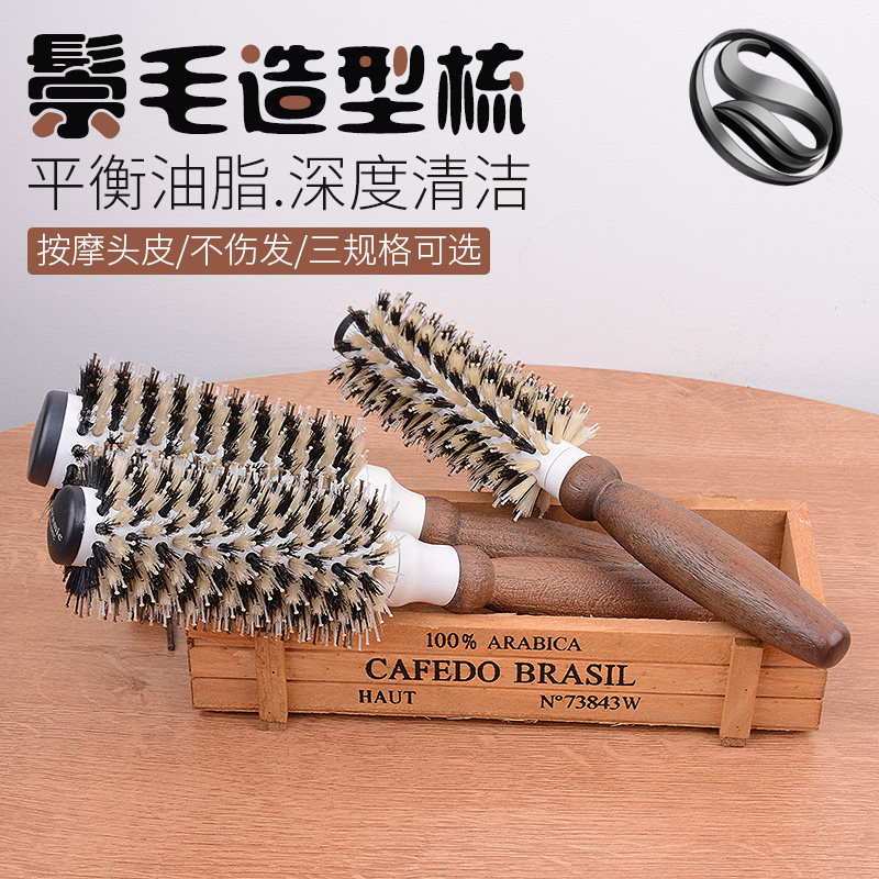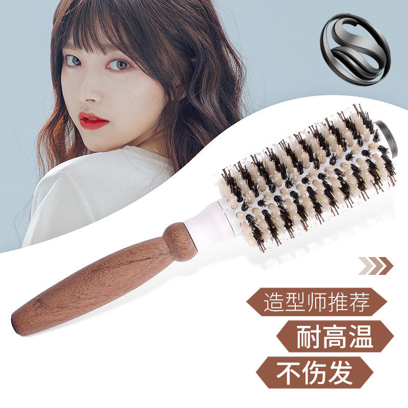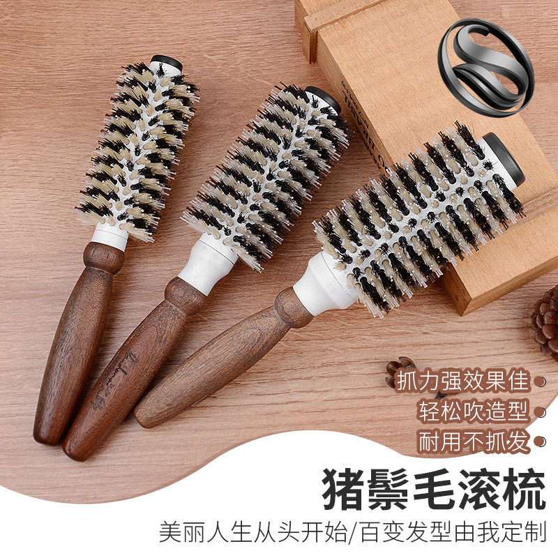 梳子猪鬃毛卷发梳子圆筒滚梳理发店陶瓷造型梳女家用内扣刘海木梳由