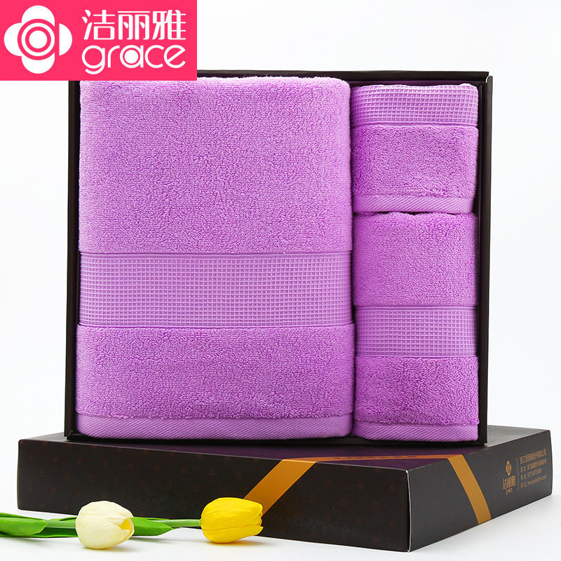 洁丽雅浴巾三件套装 毛巾方巾浴巾三件套 加大加厚送礼回礼由
