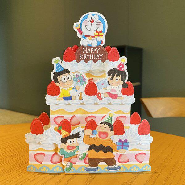 日本制卡通立体生日贺卡哆啦A梦大雄亲子儿童送宝宝蓝胖子手写卡