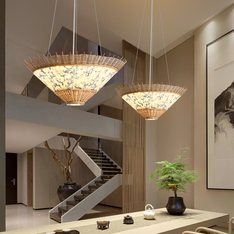 竹编吊灯新中式 竹艺灯笼民宿仿古灯罩 灯饰藤编禅意茶室餐厅灯日式