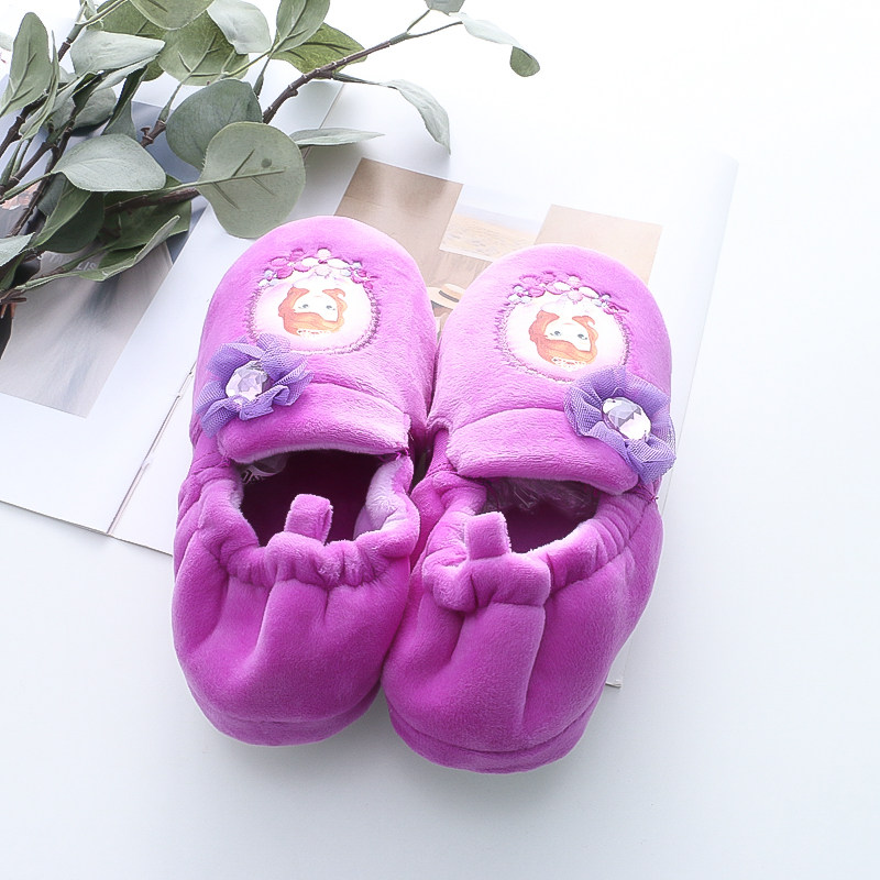 卡通公主风小女孩平底鞋 外贸儿童包跟棉拖鞋 冬款 一脚蹬家居鞋 暖鞋由