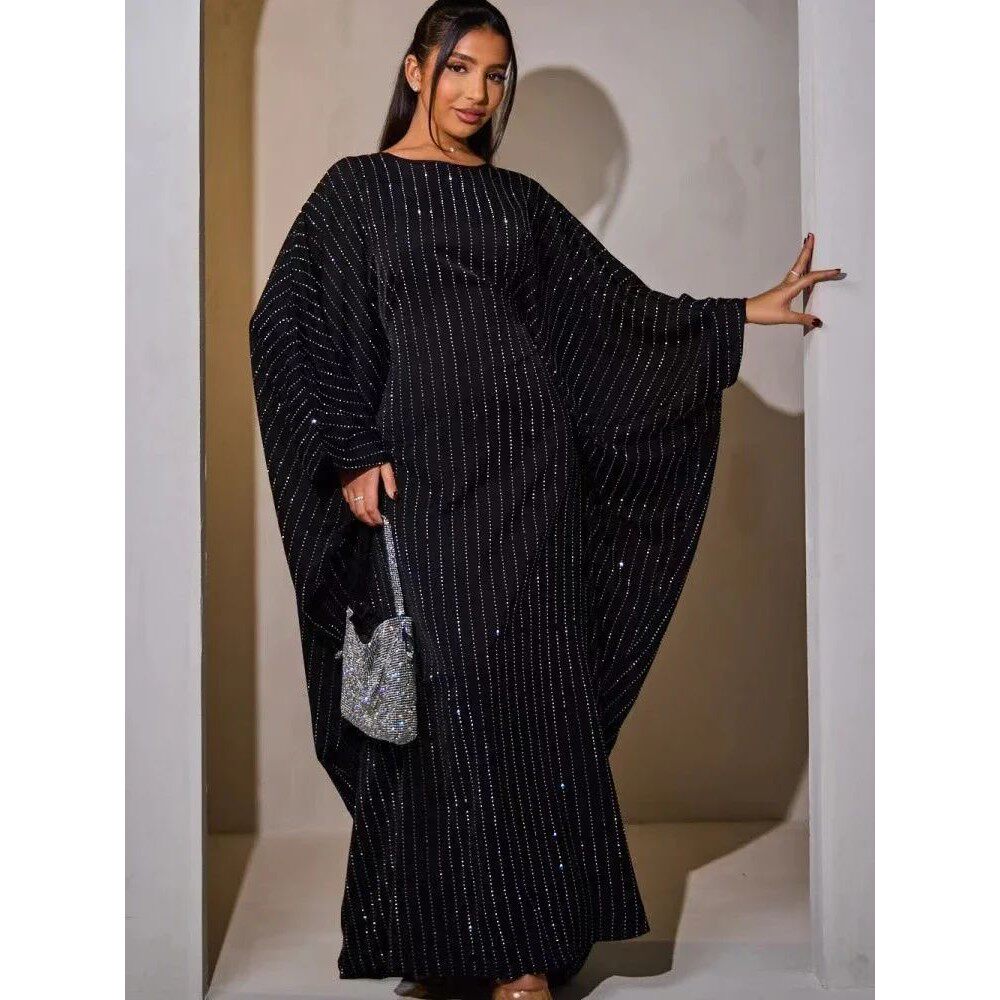 Dubai Caftan Sleeve Diamond Bat Dress Party Women Robe