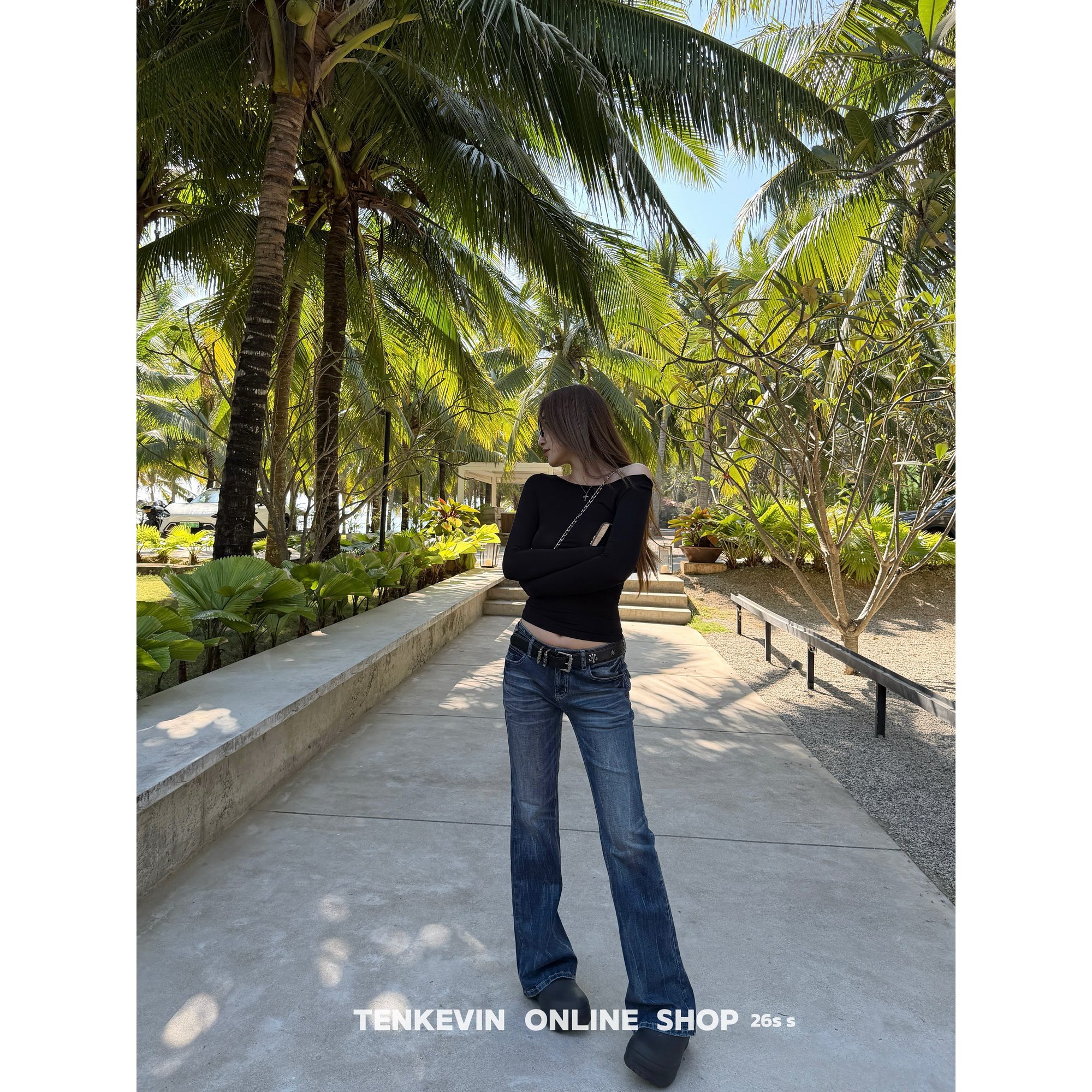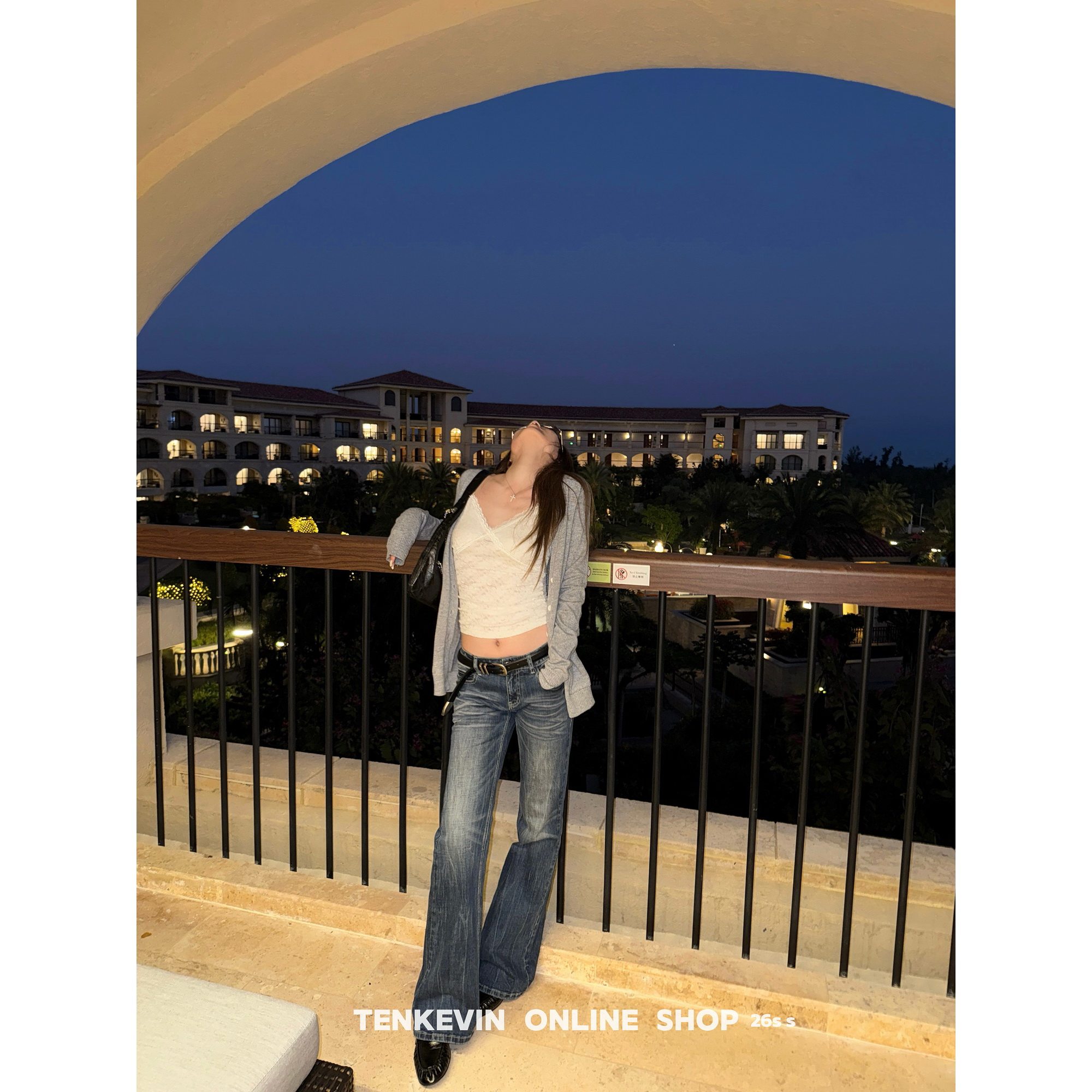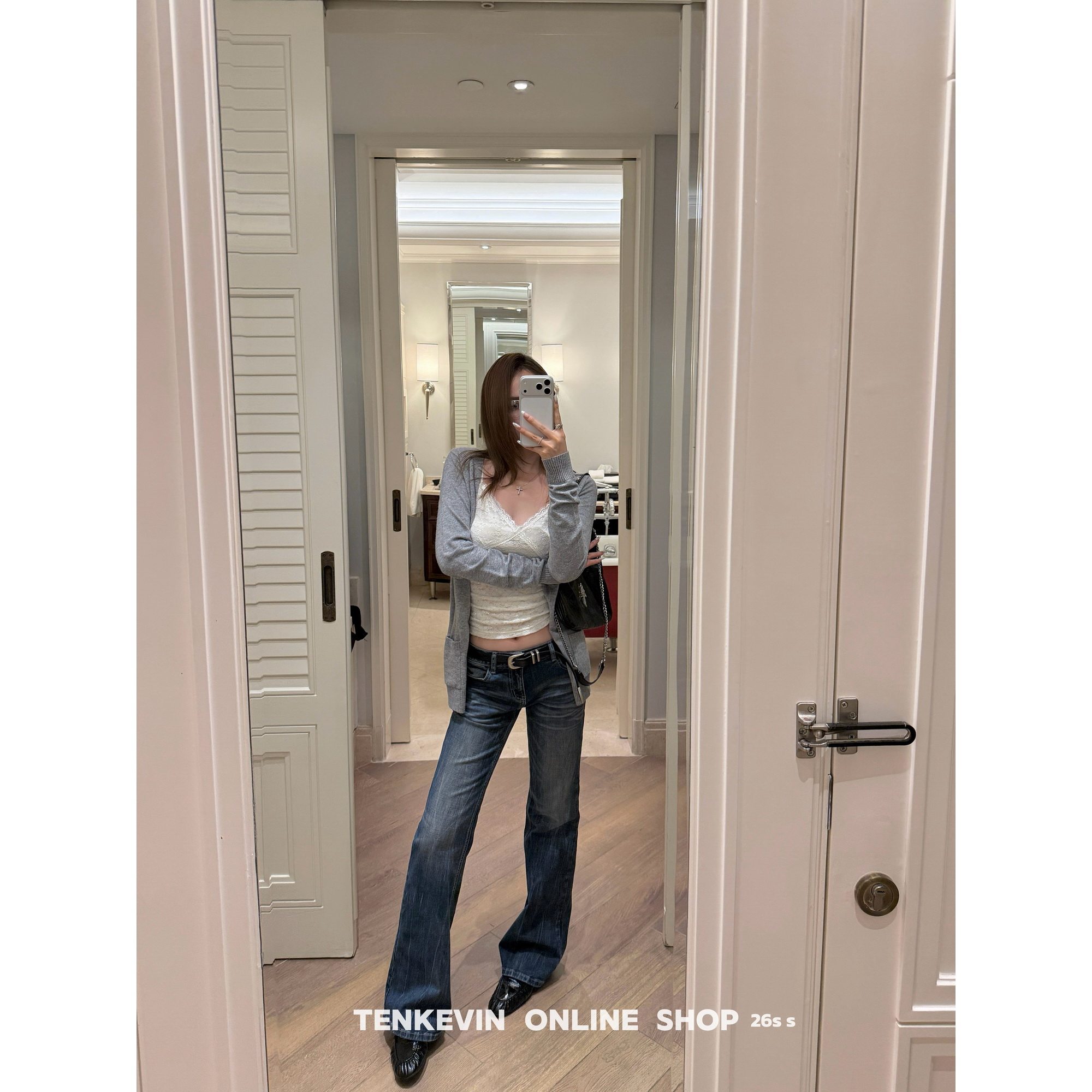 长裤 十一石 显瘦窄版 女修身 调性闪电纹 复古水洗低腰微喇牛仔裤
