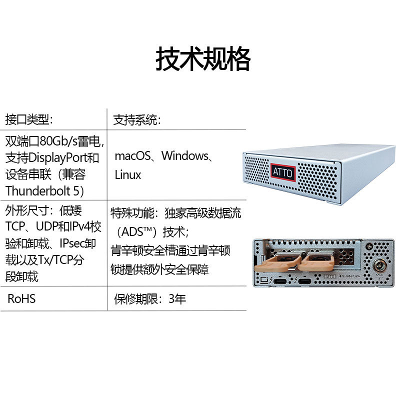 为您提供商品ATTO 5102双端口光纤转换器100Gb以太网适配器 ThunderLink的详细介绍,