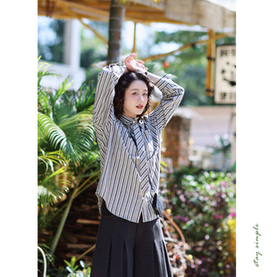 衬衫 花吉C166灰绿 可拆卸领带 植绒条纹长袖 春衬衣 女2026新款由