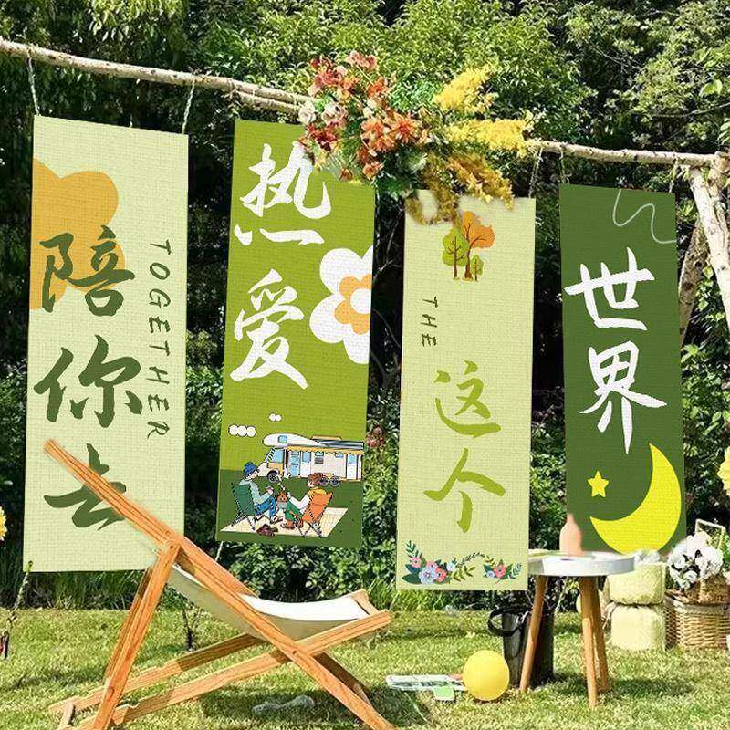 风新款 背景饰布餐置营地厂家直供团 户外露营挂布网红打卡氛围感装由