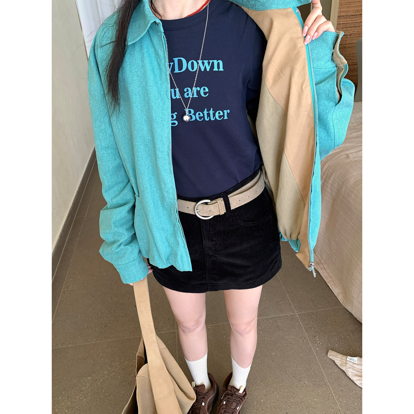 CCKOK 韩系通勤穿搭休闲简约炒色100%棉工装 外套夹克女 现货