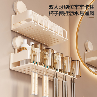 吸盘牙刷置物架免打孔卫生间漱口杯化妆品收纳架家庭牙具牙膏套装