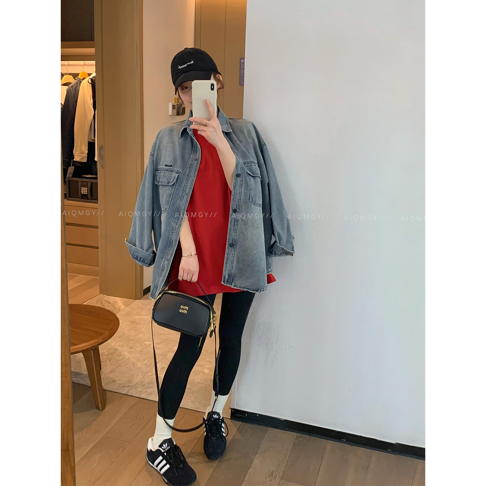 LA短袖 宽松百搭印花上衣白色11 T恤男女情侣落肩袖