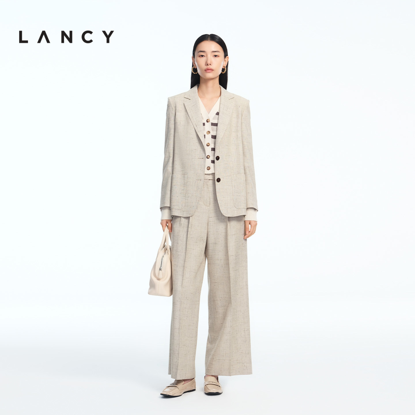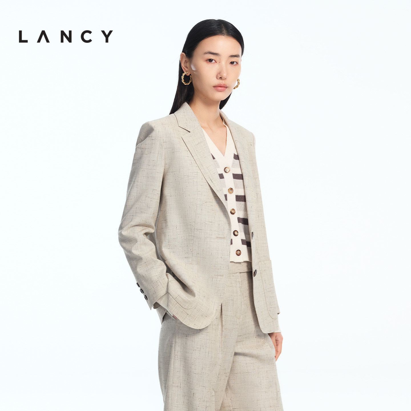 为您提供商品LANCY 新款 羊毛柞蚕丝通勤职业老钱风正肩西装 外套女 朗姿2026春季的详细介绍,