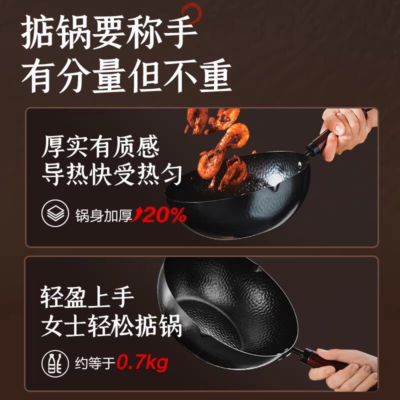 为您提供商品一人食 苏泊尔小铁锅炒锅炒菜锅家用锤纹防粘精铁锅小号无涂层正品的详细介绍,
