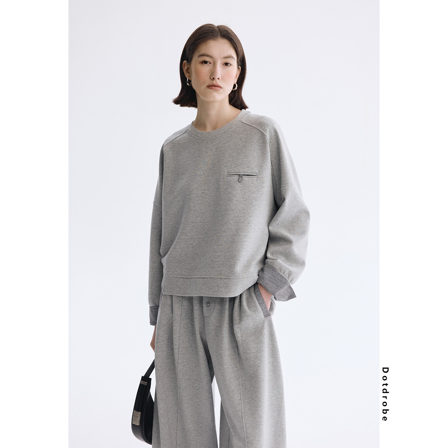 女春款 Dotdrobe多着 套装 弯刀型卫裤 假两件拼接袖 口极简卫衣