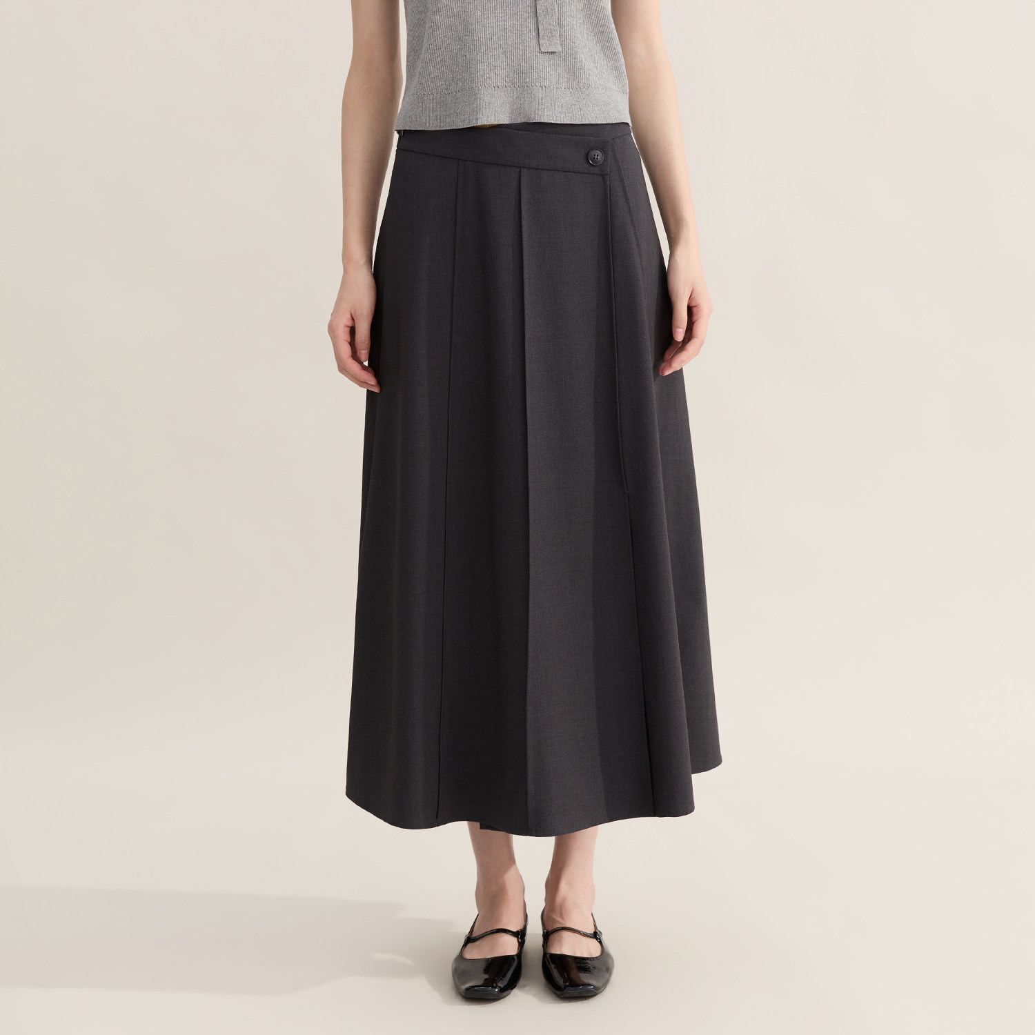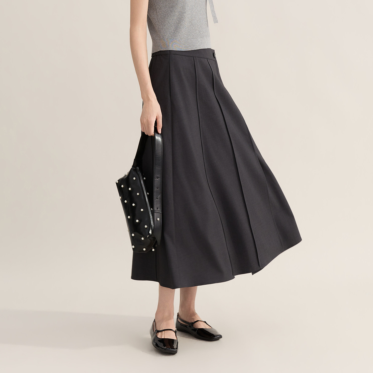 百搭半身裙显瘦西装 裙子 BRAND纯色通勤垂感高腰A字百褶裙经典 RPB