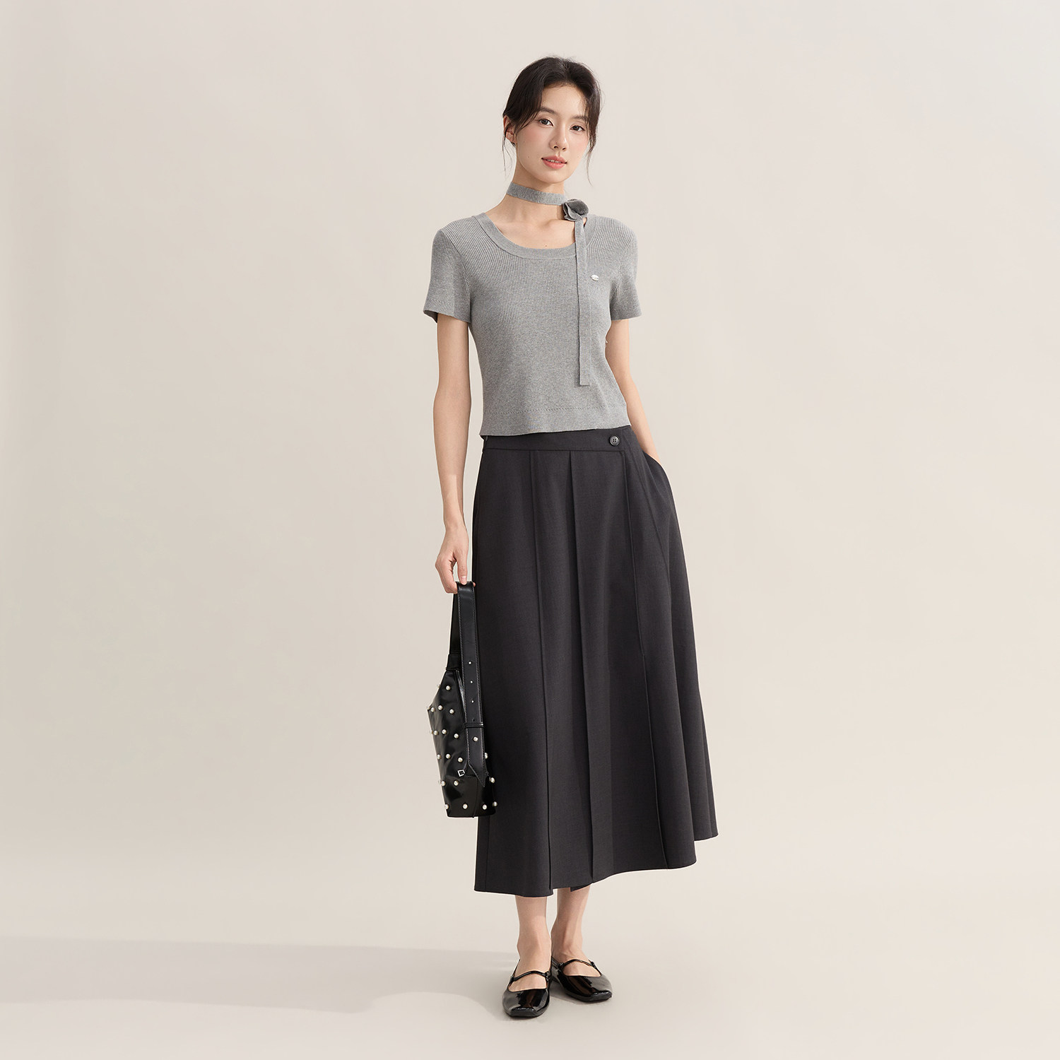 设计感开衩a字半身裙女夏通勤休闲伞裙G03X07A0372 GCRUES商场同款
