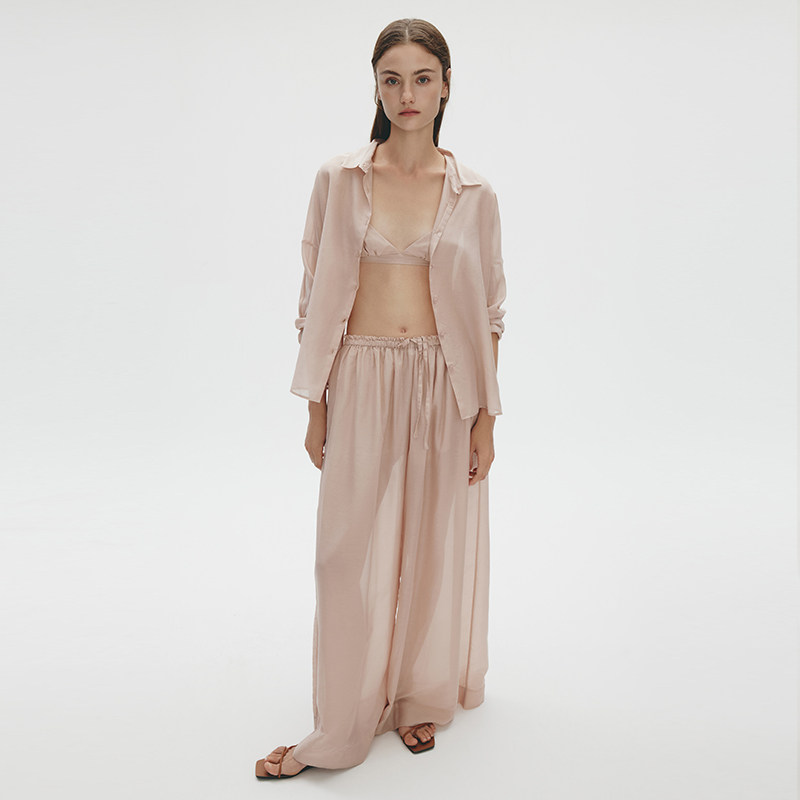衬衫 女微透防晒衬衣肌理慵懒气质上衣 条纹长袖 pusumede乔妹同款