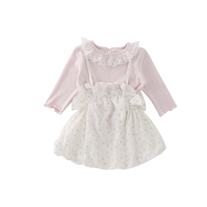两件套女童春装 婴儿套装 春秋新款 宝宝甜美洋气上衣碎花背带裤 套装