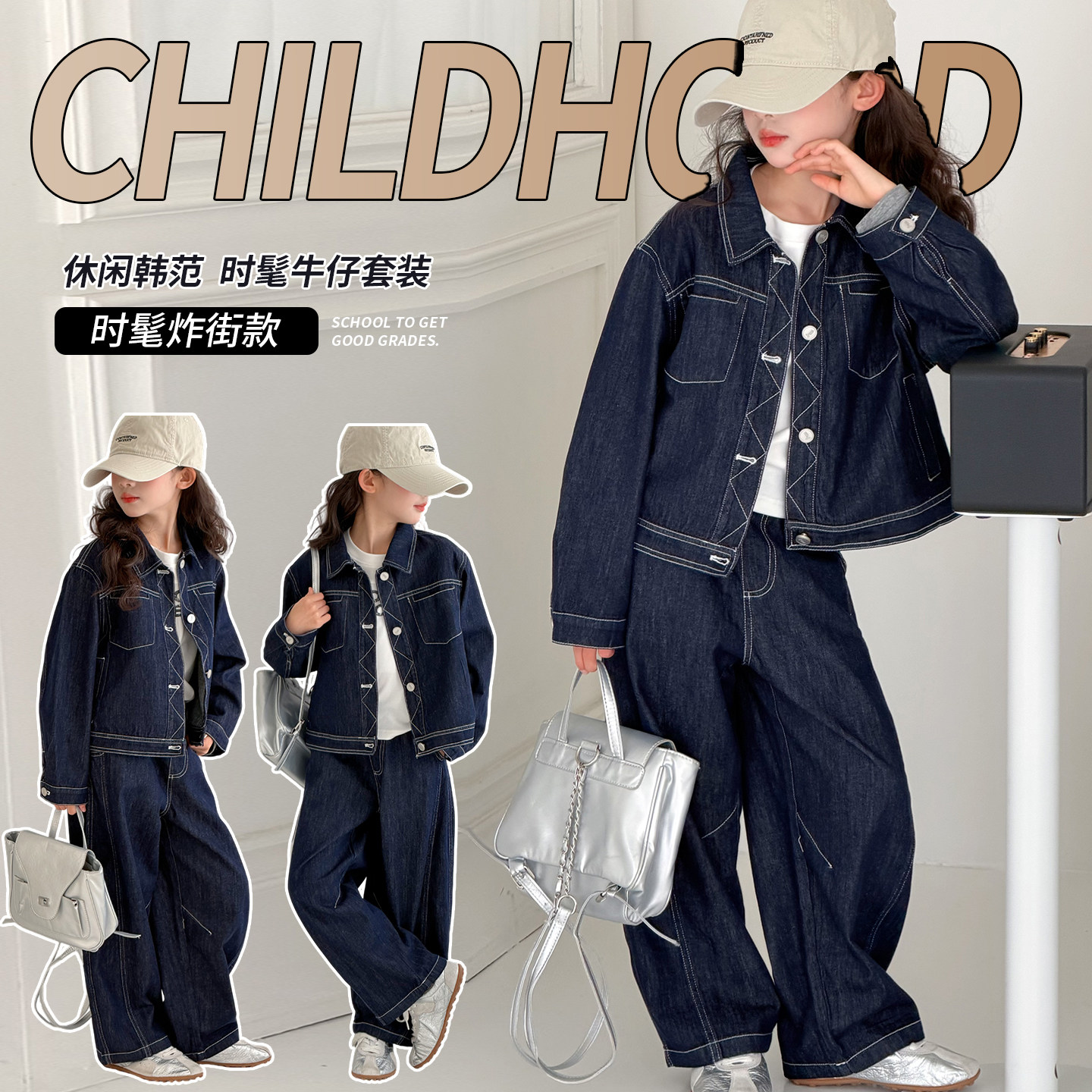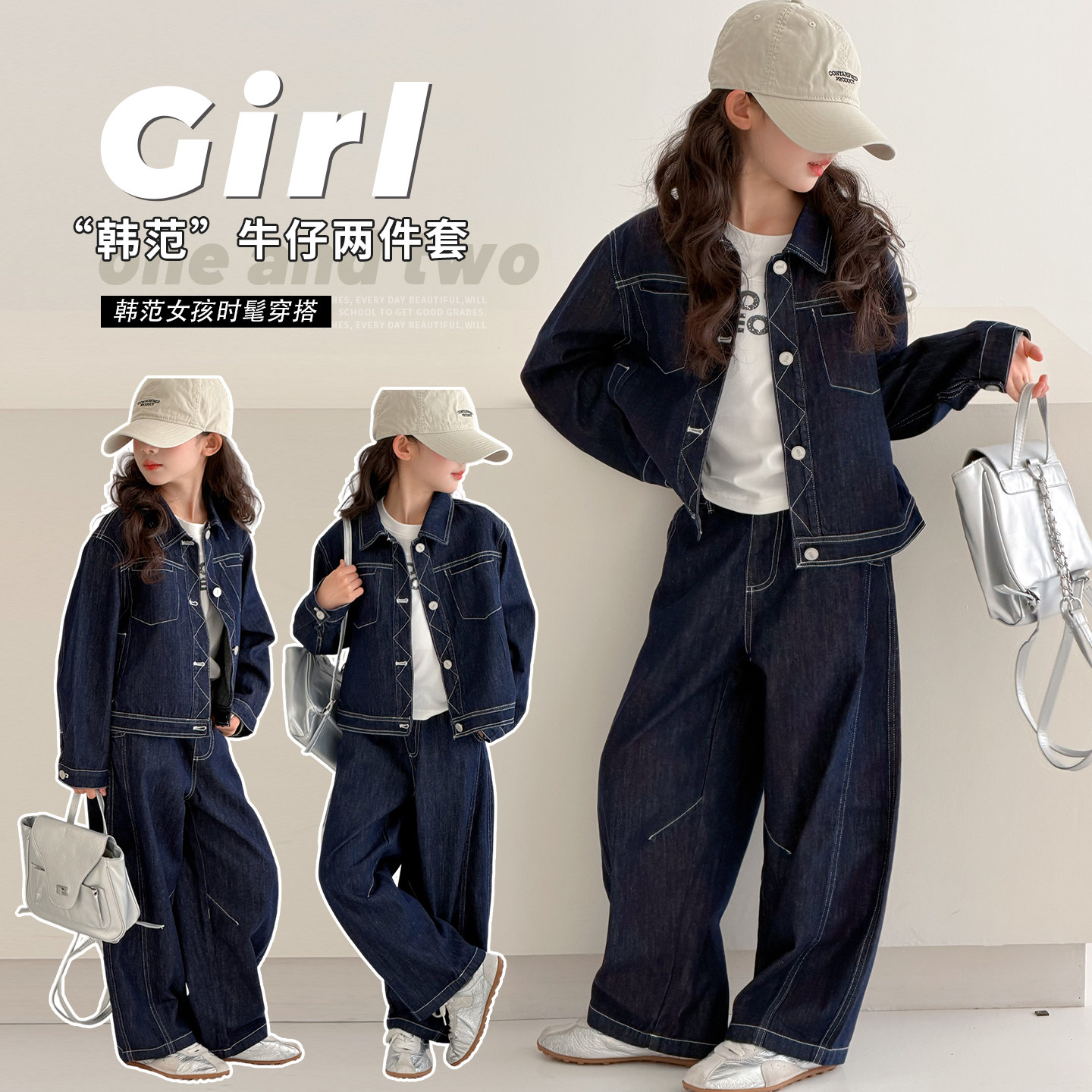 2026春秋新款 中大童洋气潮流百搭韩系牛仔两件套 牛仔套装 女童春季