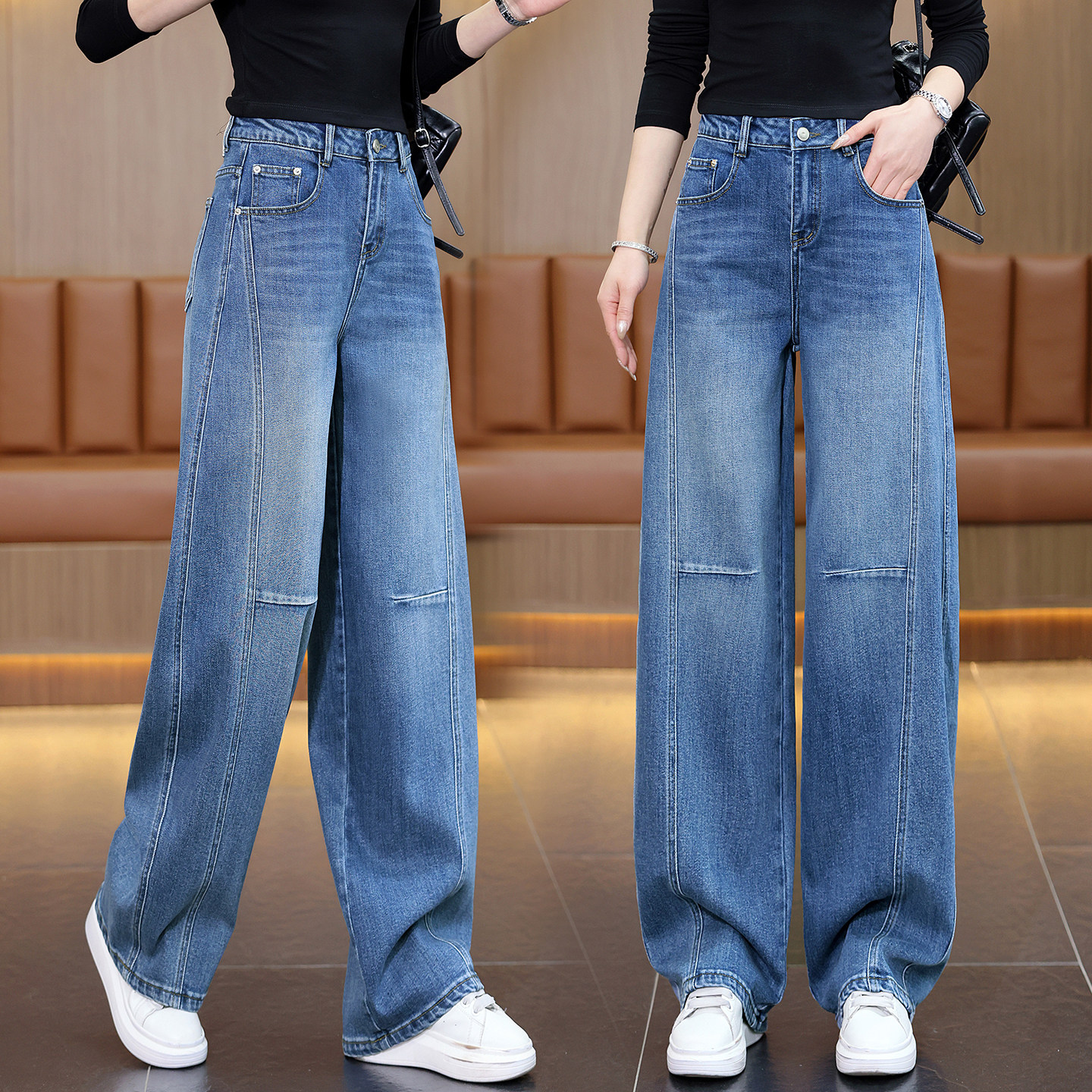 为您提供商品高腰显瘦百搭减龄阔腿裤 时尚 洋气质韩版 新款 休闲牛仔裤 女2026春季的详细介绍,