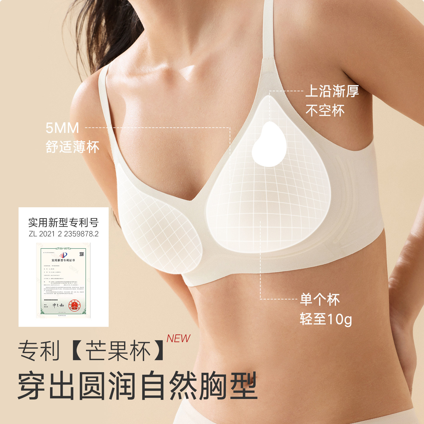 气垫杯固定杯内衣粉底液隐形无痕文胸NEIWAI 内外橙标云朵无尺码