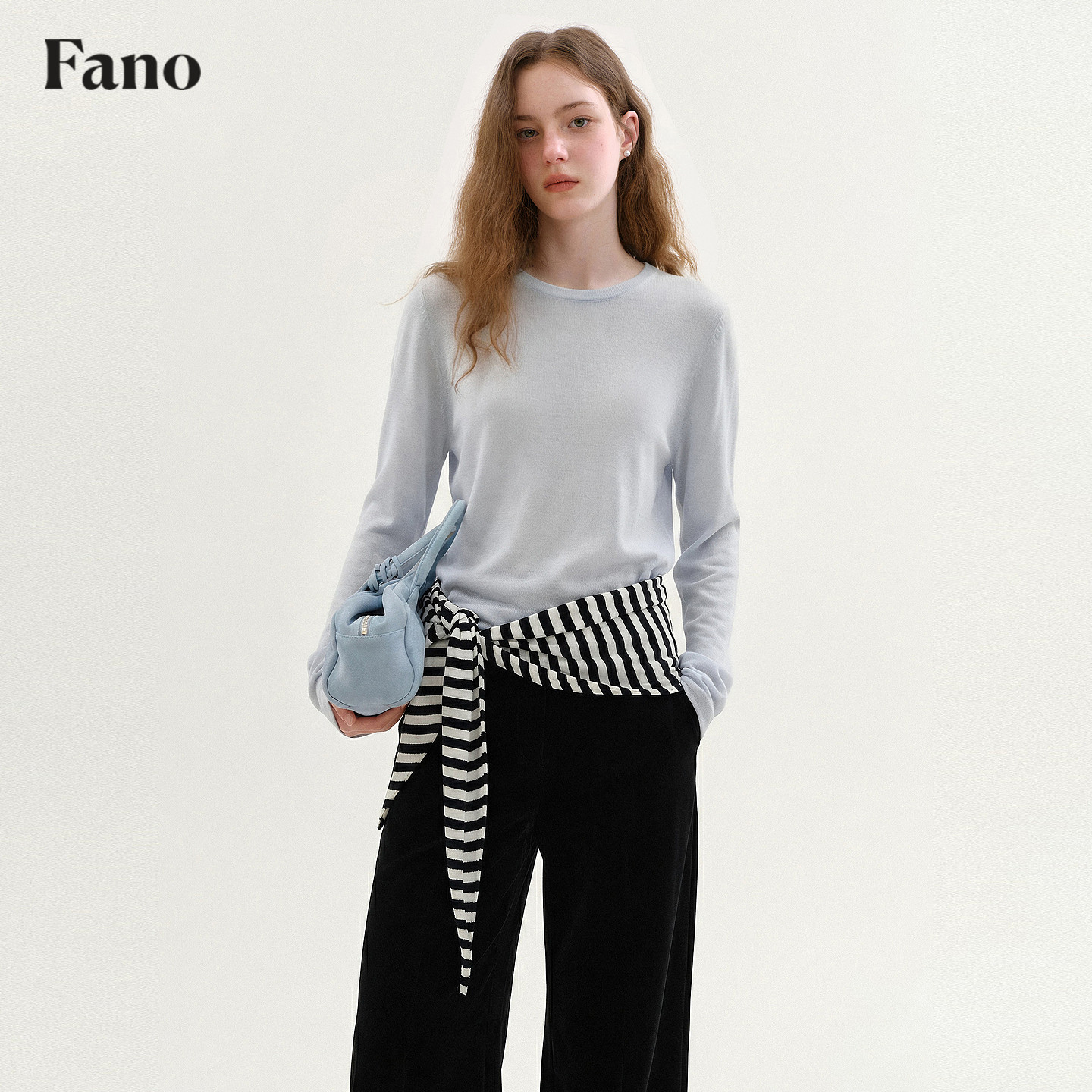 范洛Fano 女2026春季 新款 鹅黄条纹披肩两件套 100天丝氧气感针织衫