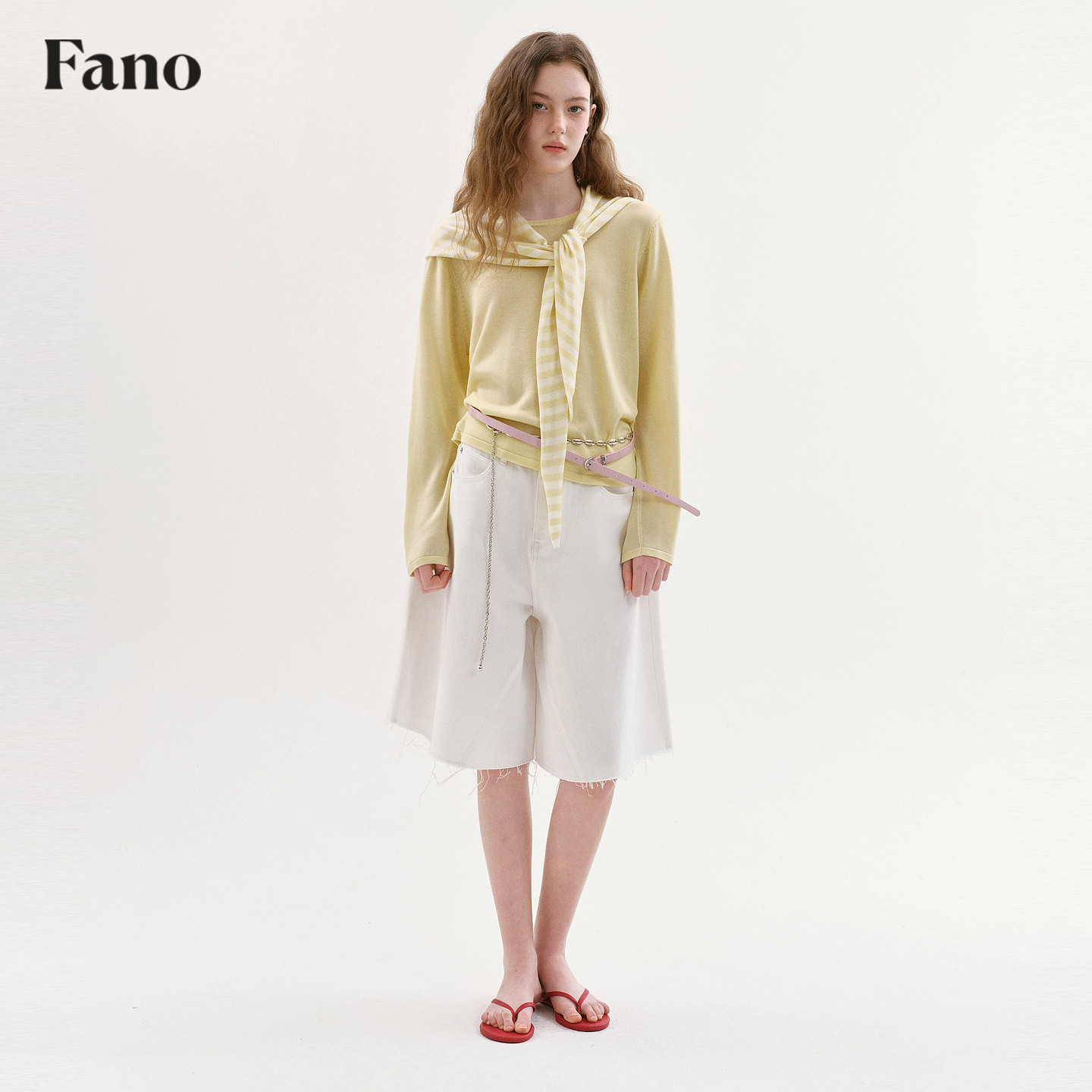 范洛Fano 女2026春季 新款 鹅黄条纹披肩两件套 100天丝氧气感针织衫由