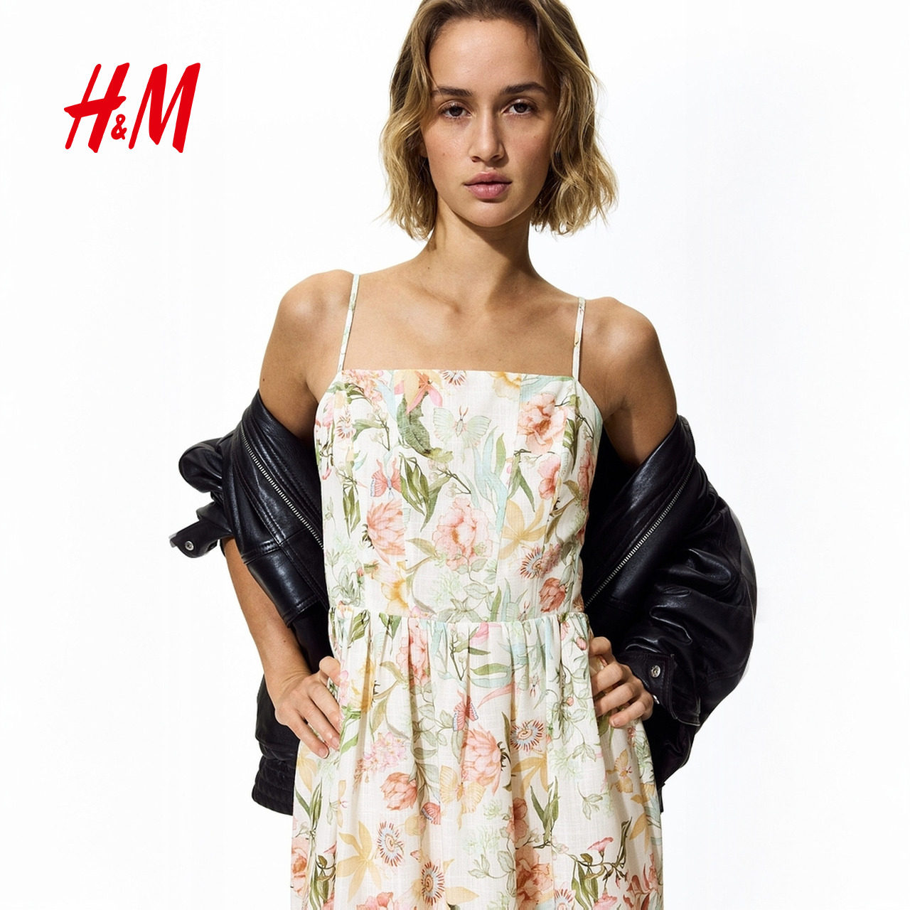 HM女装 新款 气质时尚 细吊带小碎花连衣裙1217048 连衣裙2026春季由