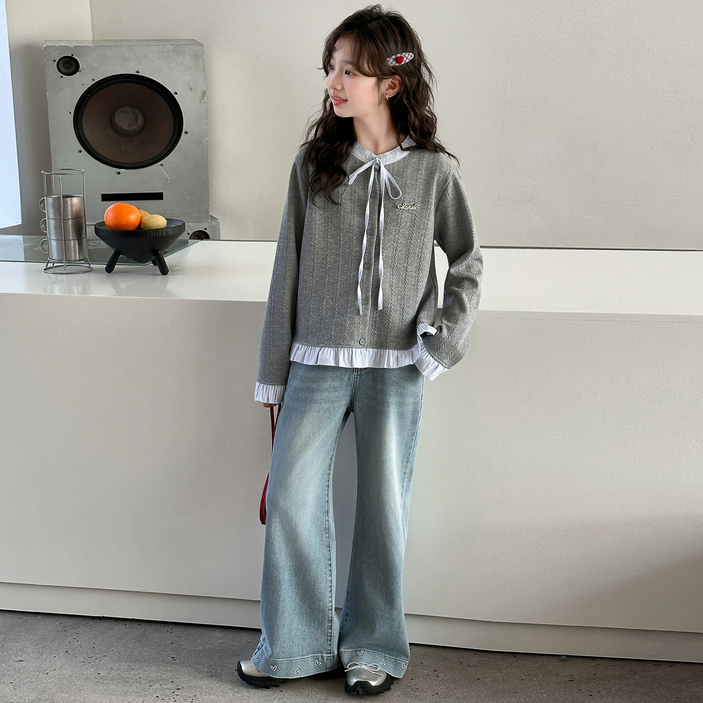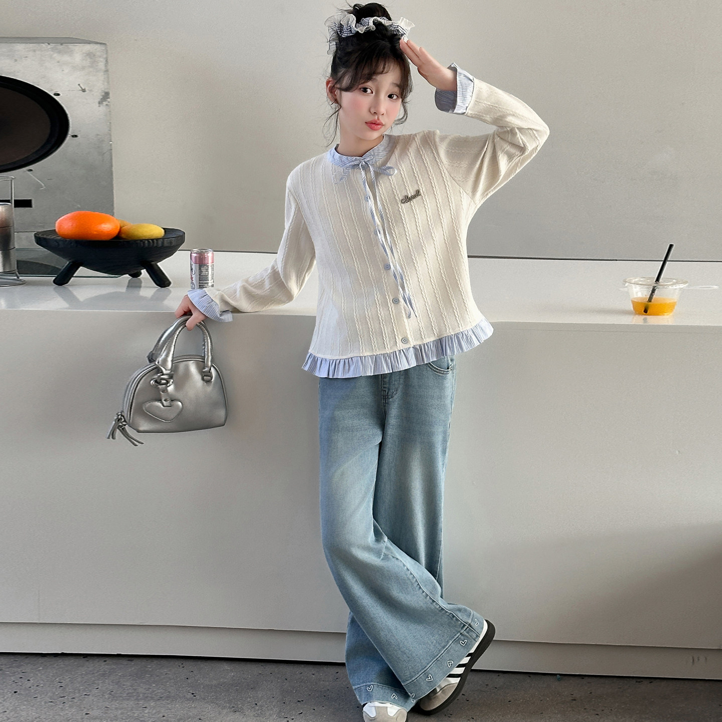 洋气儿童装 女童春装 休闲套装 2026新款 两件套 女孩学院风上衣牛仔裤