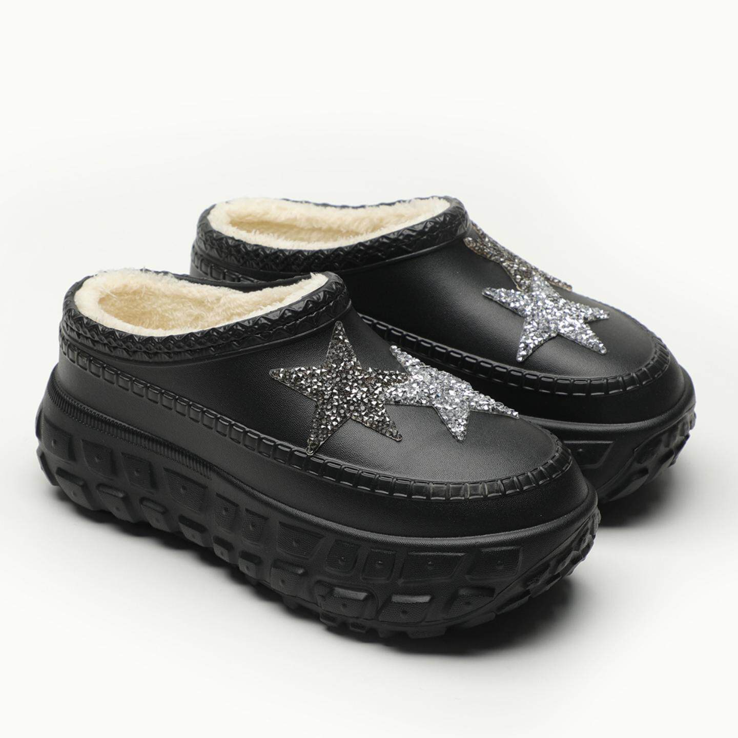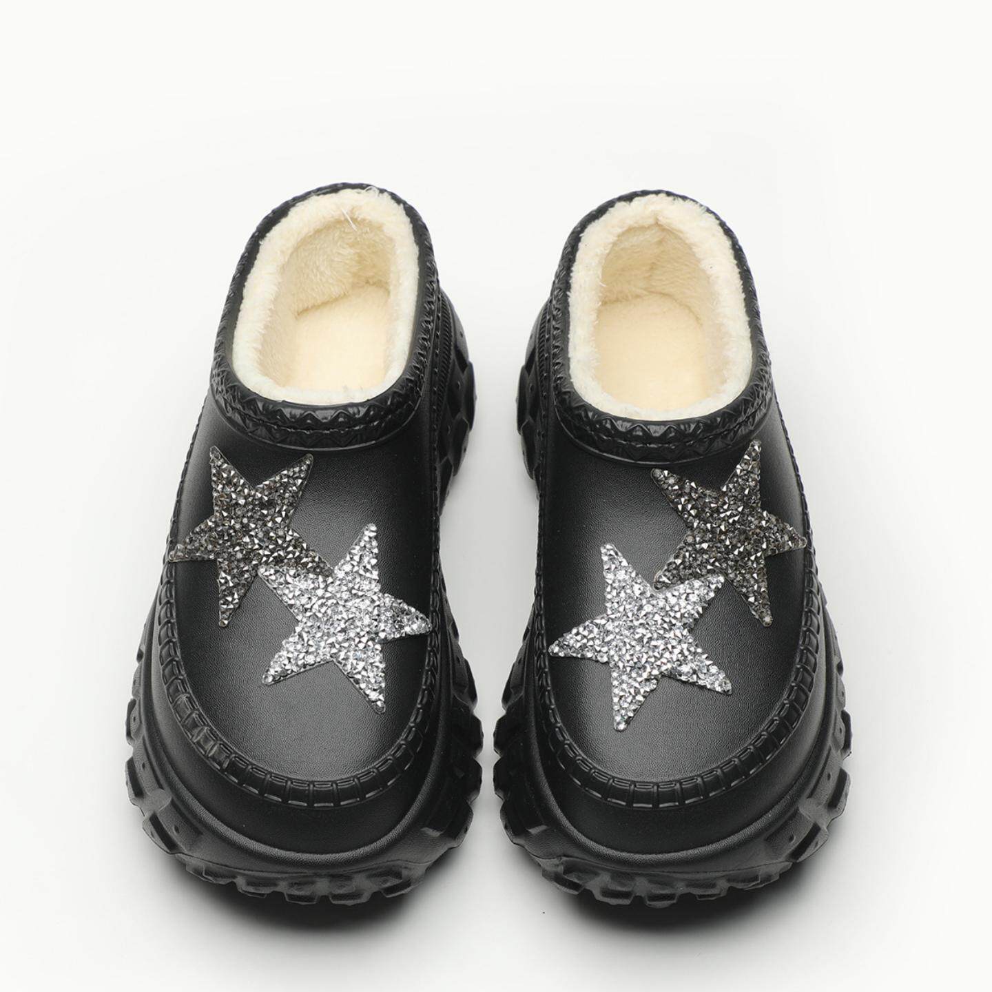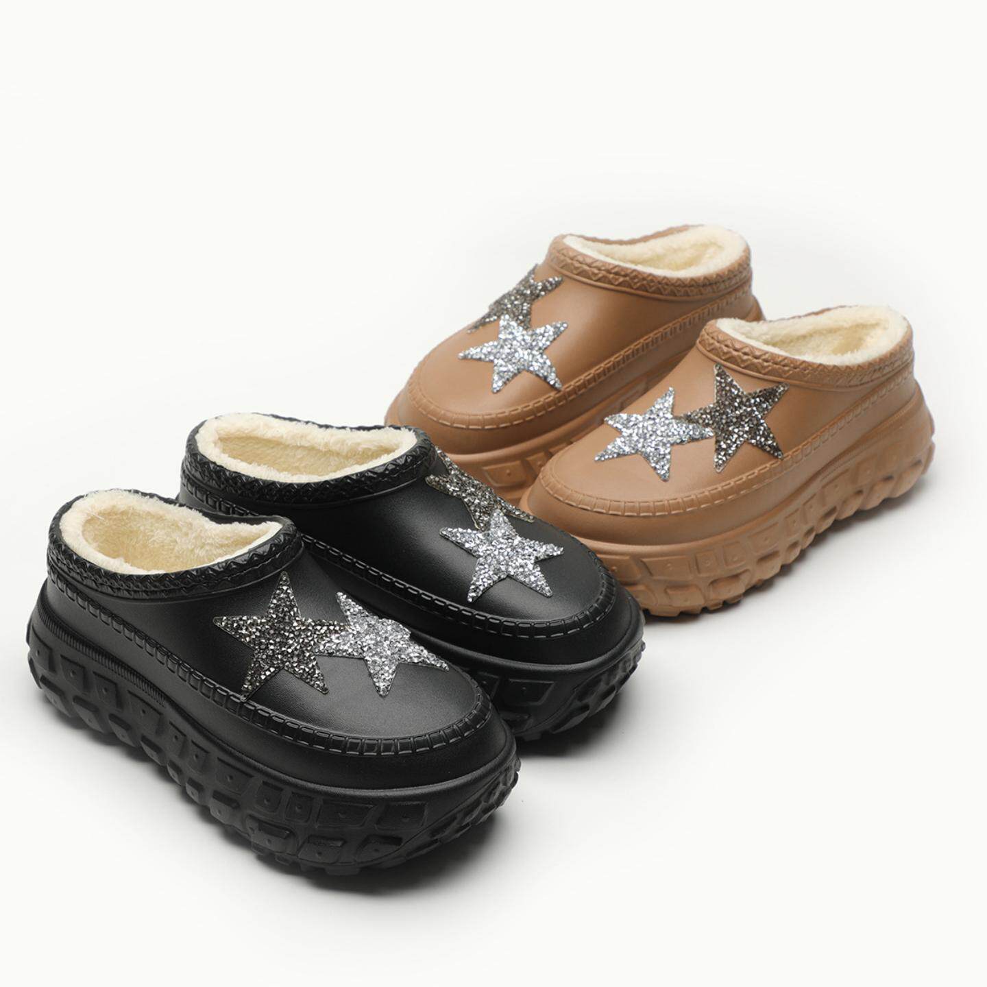五角星增高毛毛棉拖鞋 防滑防水时尚 网红一脚蹬棉鞋 女包跟2024新款