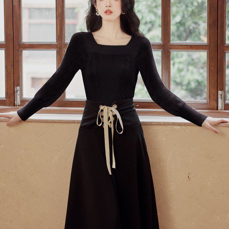 早秋季 法式 茶歇两件套连衣裙女装 2023新款 长裙 内搭针织套装