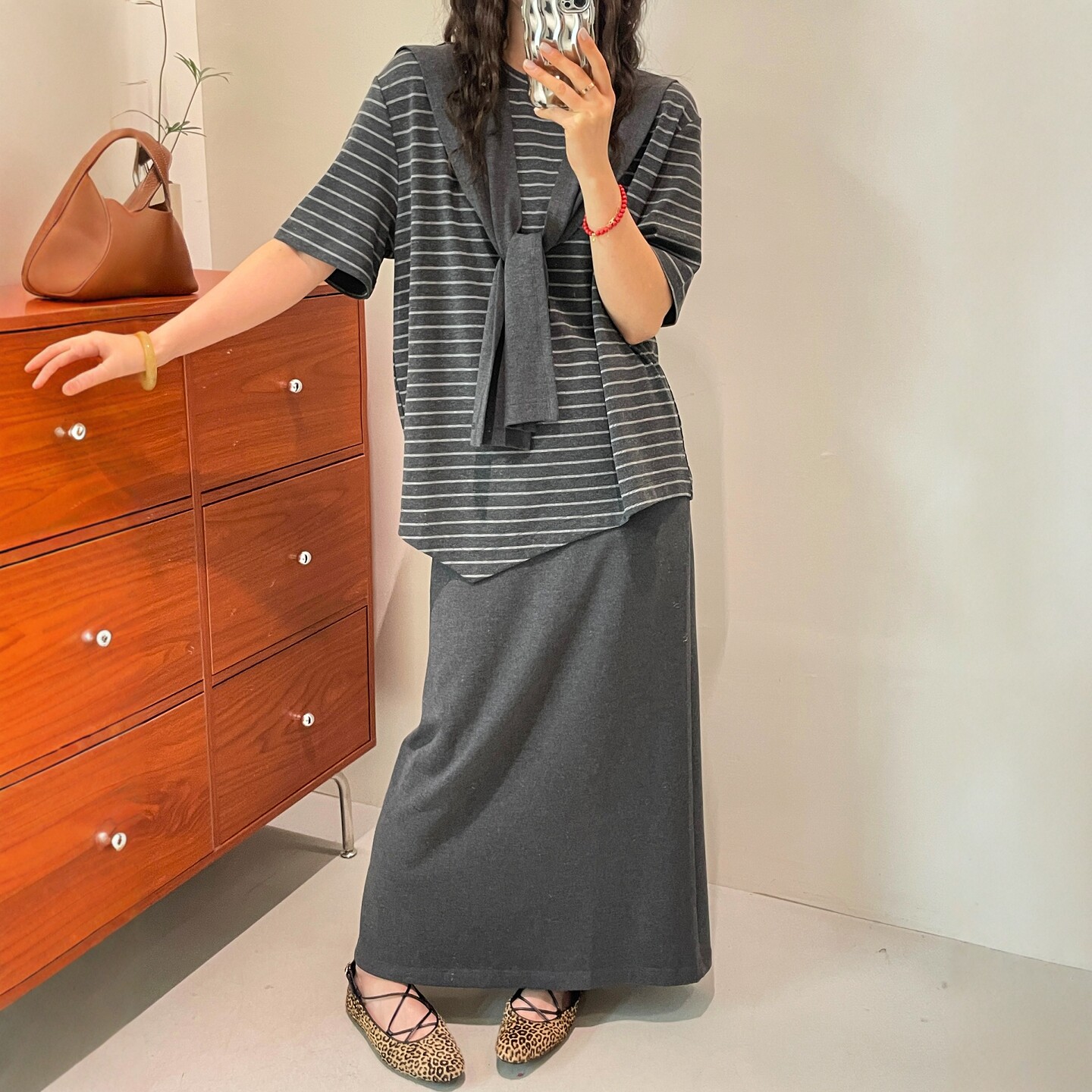 配披肩条纹T恤半身裙三件套套装 新款 欧货女装 潮 女欧洲站2026春装