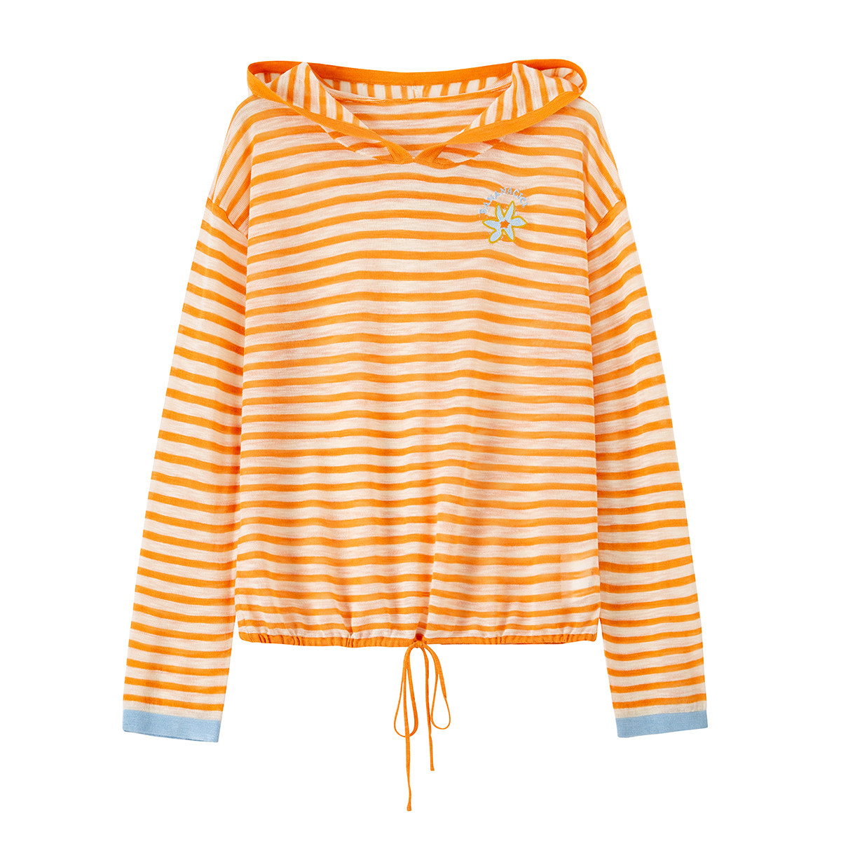 竹节麻撞色条纹绣花长袖 BANANA CICI2026年夏季 新款 连帽针织衫由
