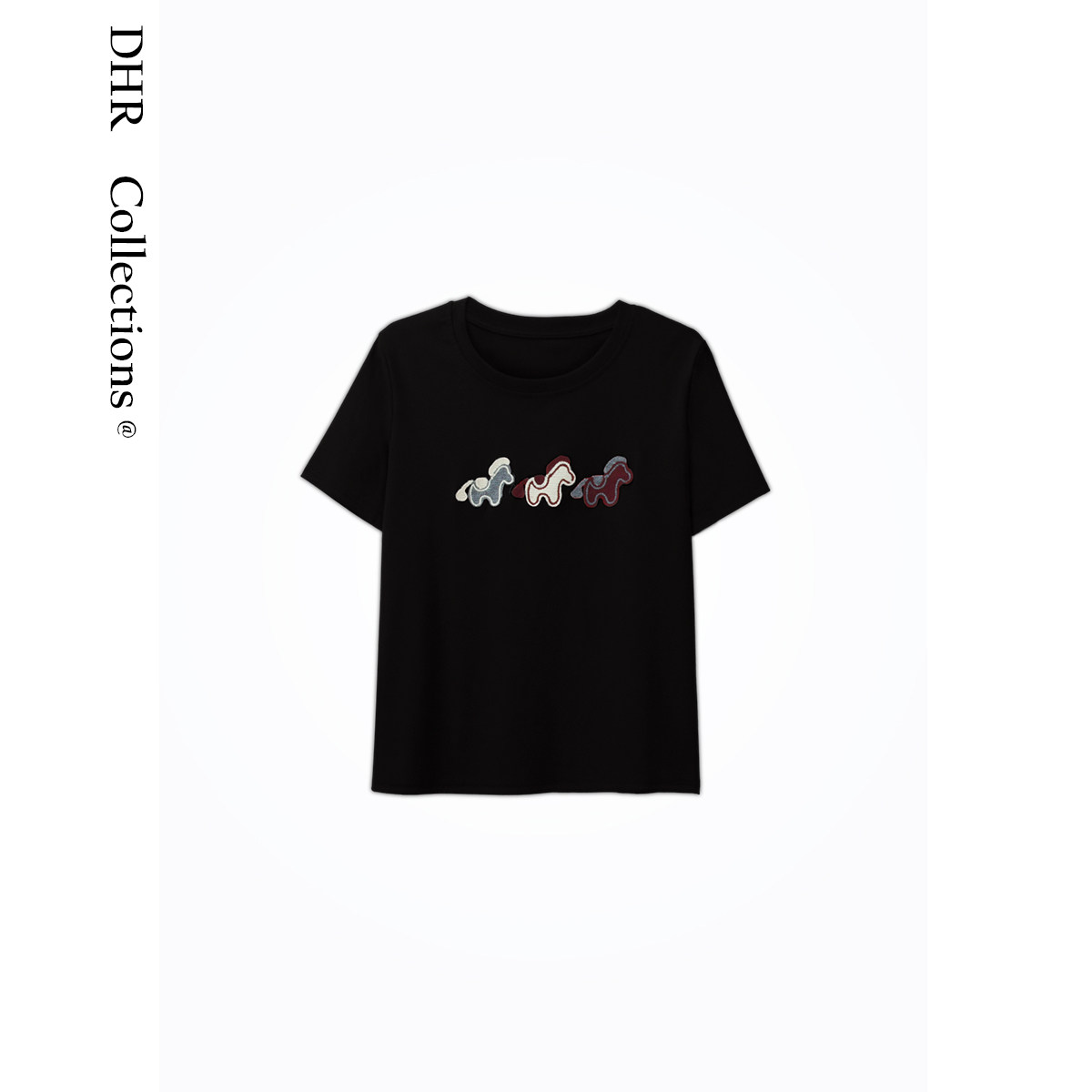 为您提供商品显瘦圆领短袖 豆豆DE 3只小马 创意趣味风修身 26CT8986 T恤女的详细介绍,