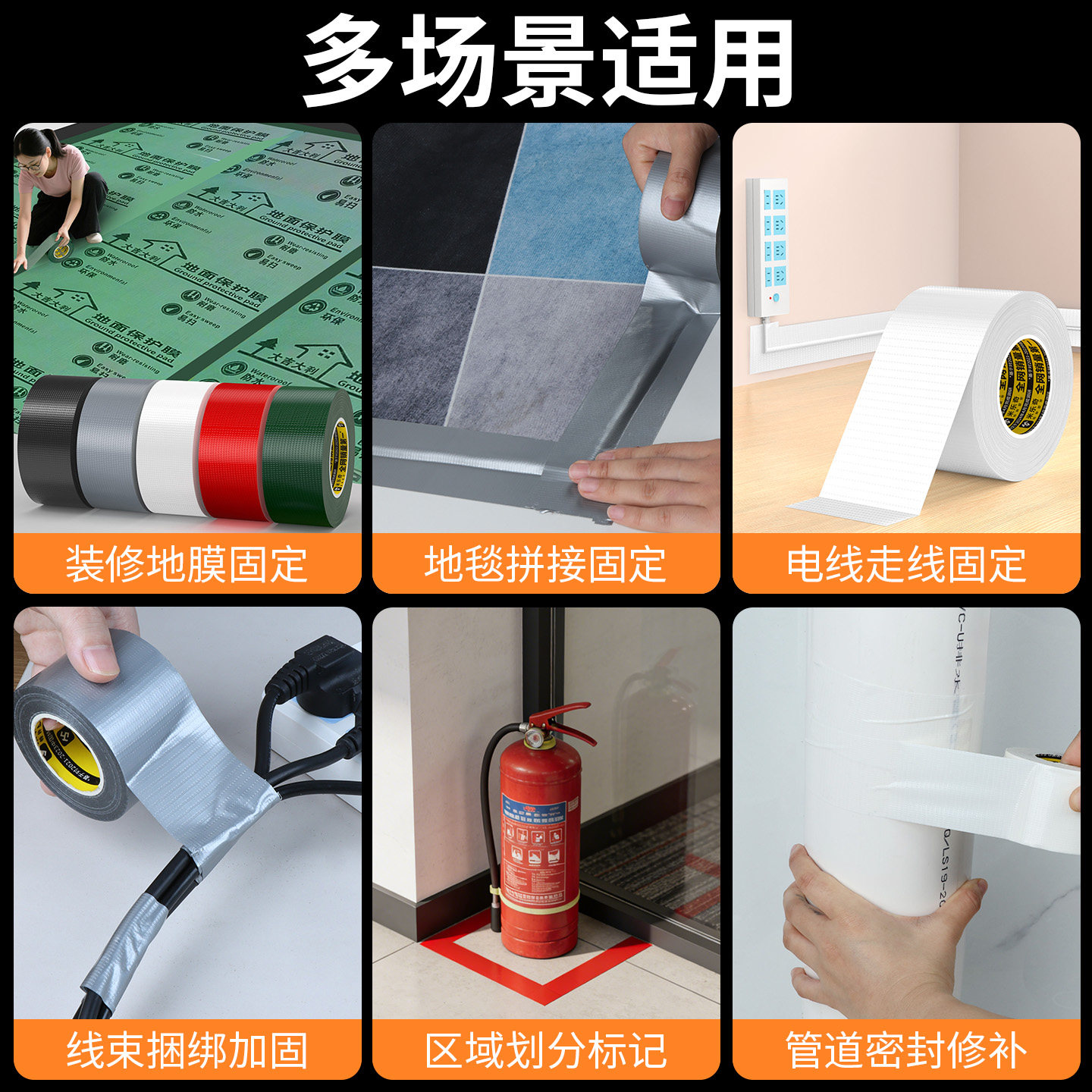 为您提供商品饰墙固定电线贴密封地膜保护膜不留痕警示 米乐奇白色单面布基胶带加厚宽强力胶布高粘度遮丑防水彩色地毯胶装的详细介绍,