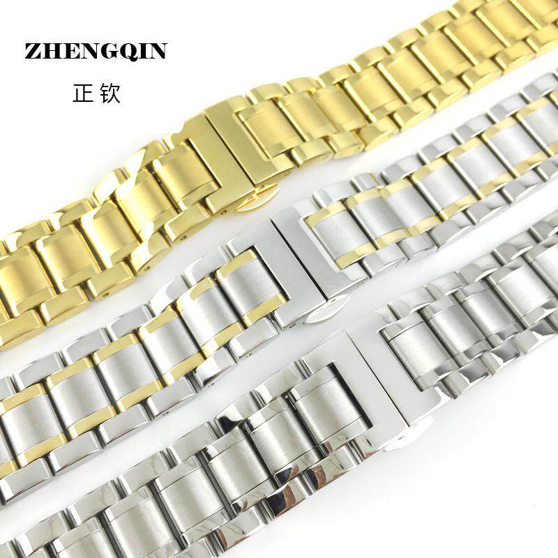 适配老上海牌表带钢带实心精钢男女士不锈钢金属手表链14 20mm