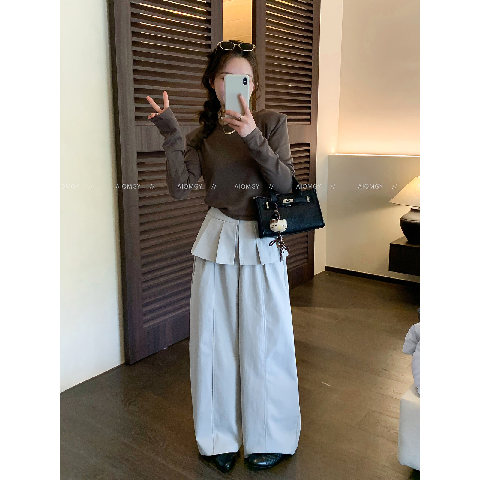 为您提供商品宽松阔腿拖地裤 爱情魔鬼鱼 新款 女2026春季 时尚 设计感拼接休闲裤的详细介绍,