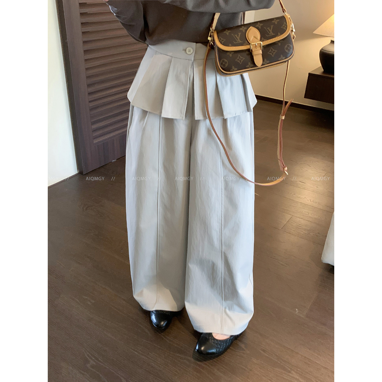 宽松阔腿拖地裤 爱情魔鬼鱼 新款 女2026春季 时尚 设计感拼接休闲裤